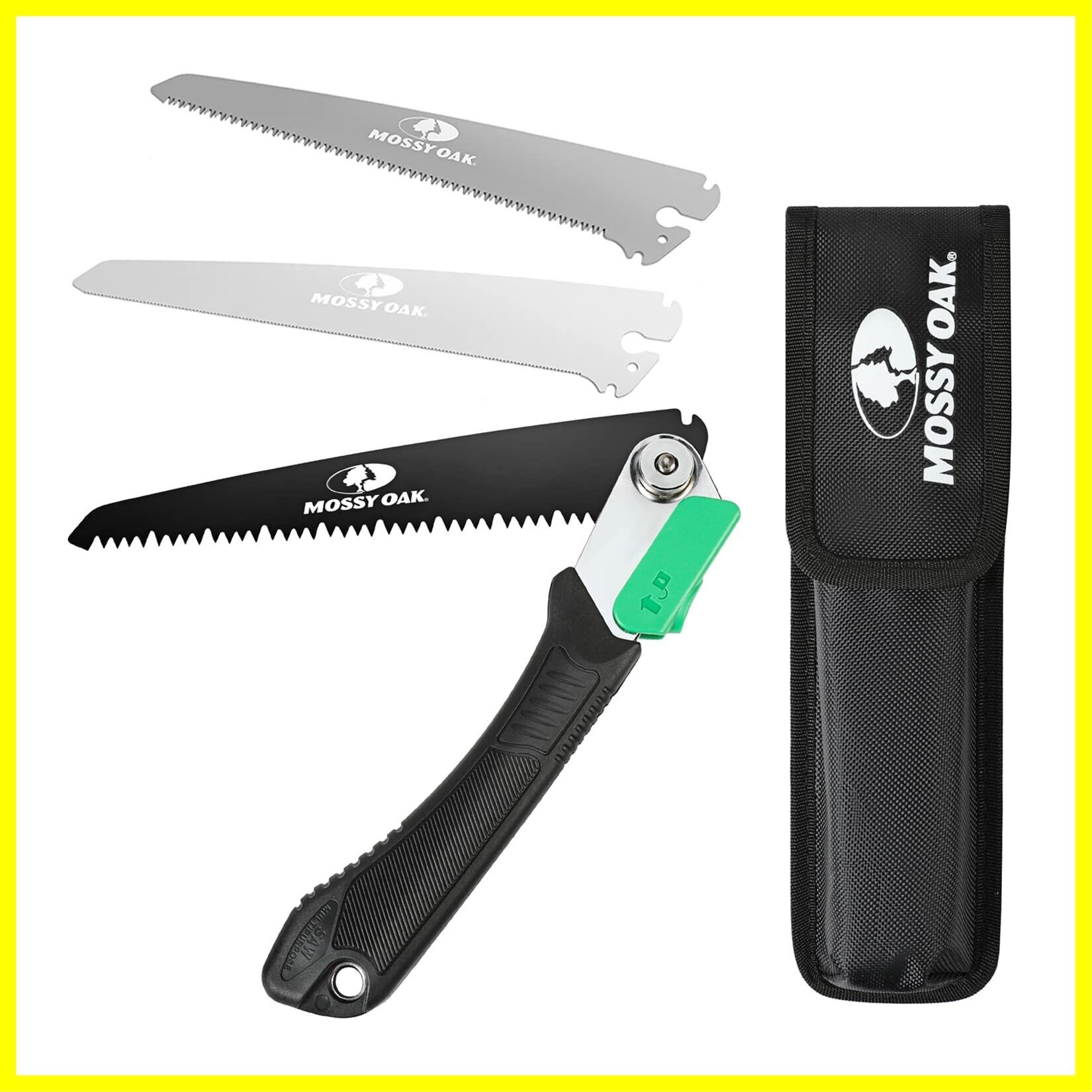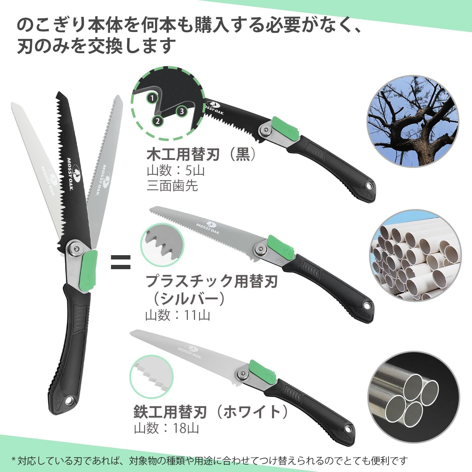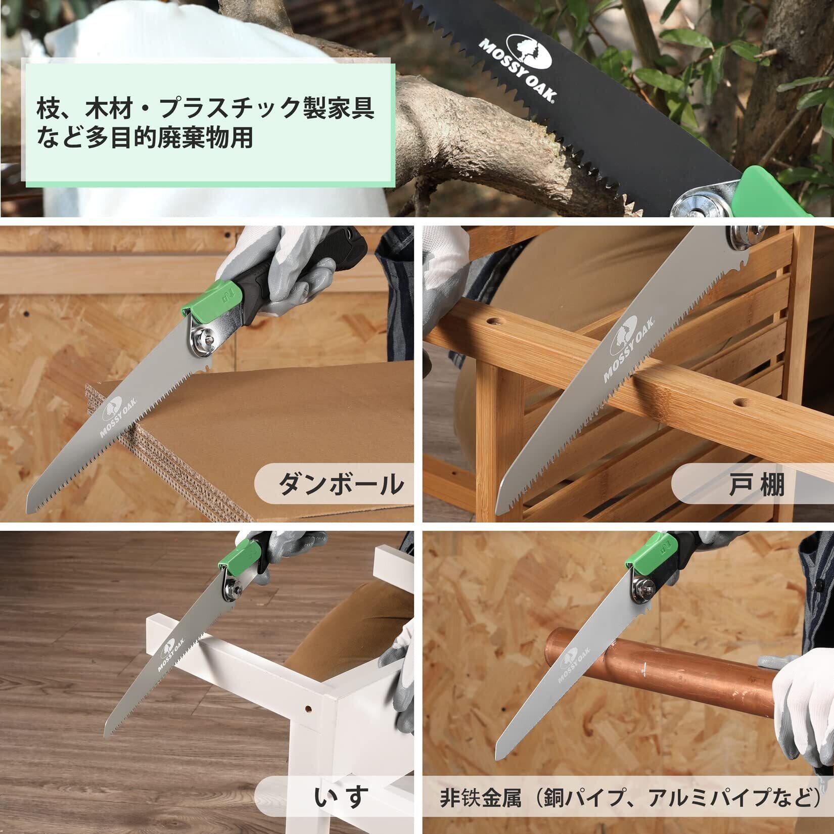MOSSY OAK ノコギリ 折込のこぎり 剪定鋸 折込鋸 替え刃3枚 折り畳み式 替え刃式 生木用 木工用 硬質プラスチック用 鉄工用替刃付き 多目的廃棄物 粗大ゴミ 安全ロック 専用収納ケース付き