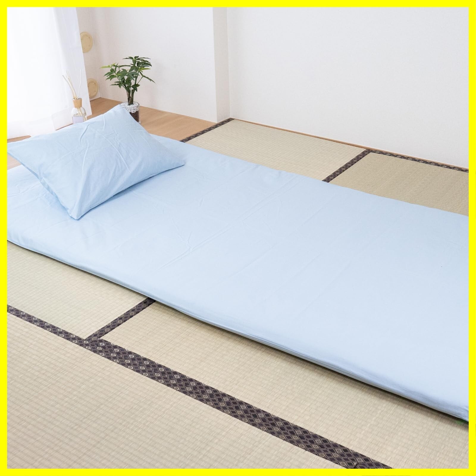 【商品仕様】サイズ: 105×215cm マチ20cm シングルサイズ(100×200cm) シングルロングサイズ(100×210cm)の敷き布団に対応します。 組成:綿100% 加工:全周ゴム カラー:ブルー