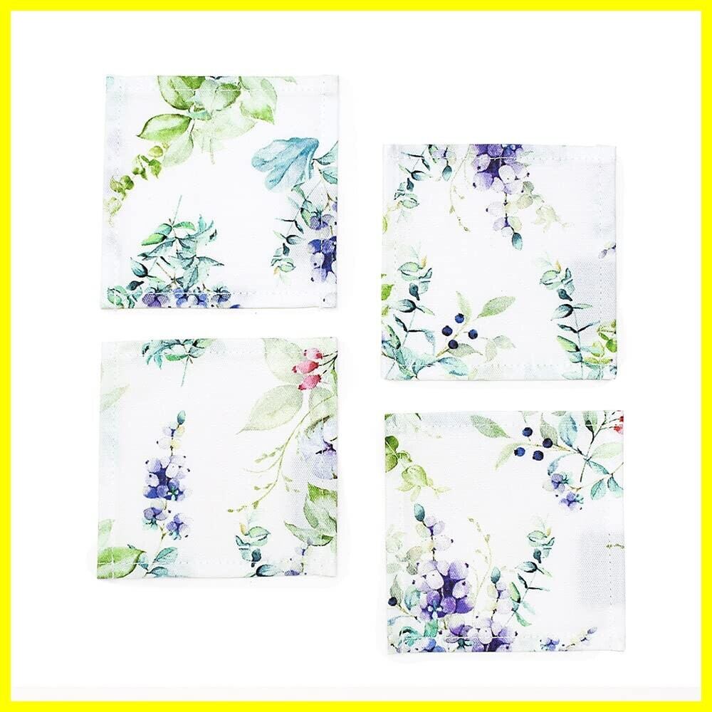 スタイルデコール(STYLE Decor) コースター 綿100% おしゃれ 布 4枚セット 洗える 北欧 花柄 ボタニカル ブルー W3000700