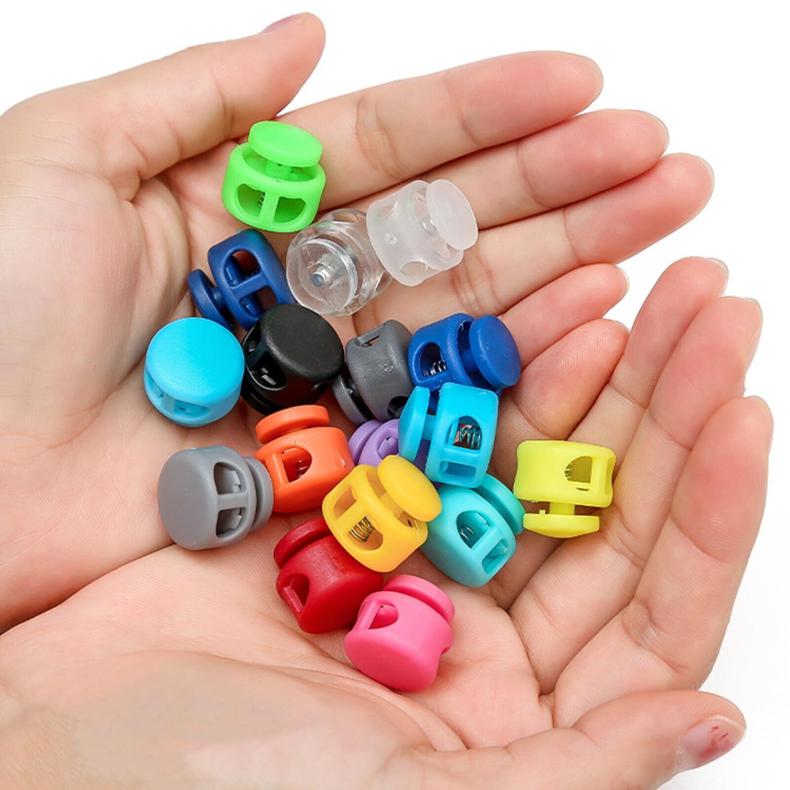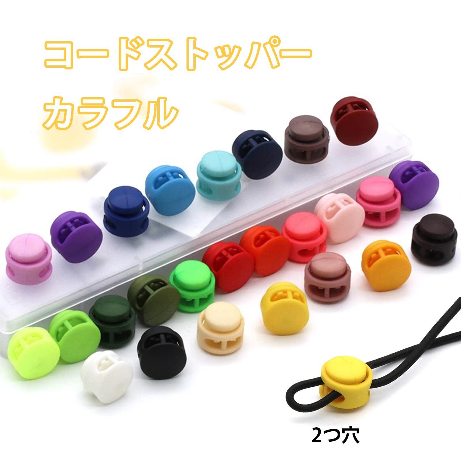 [YFFSFDC] 約50個入り カラフル コードストッパー 2穴 コードロック スプリング 紐止め ゴム調整バックル アウトドア 衣類 帽子 靴ひも 交換/補修用 留め具 DIY 手作り 素材