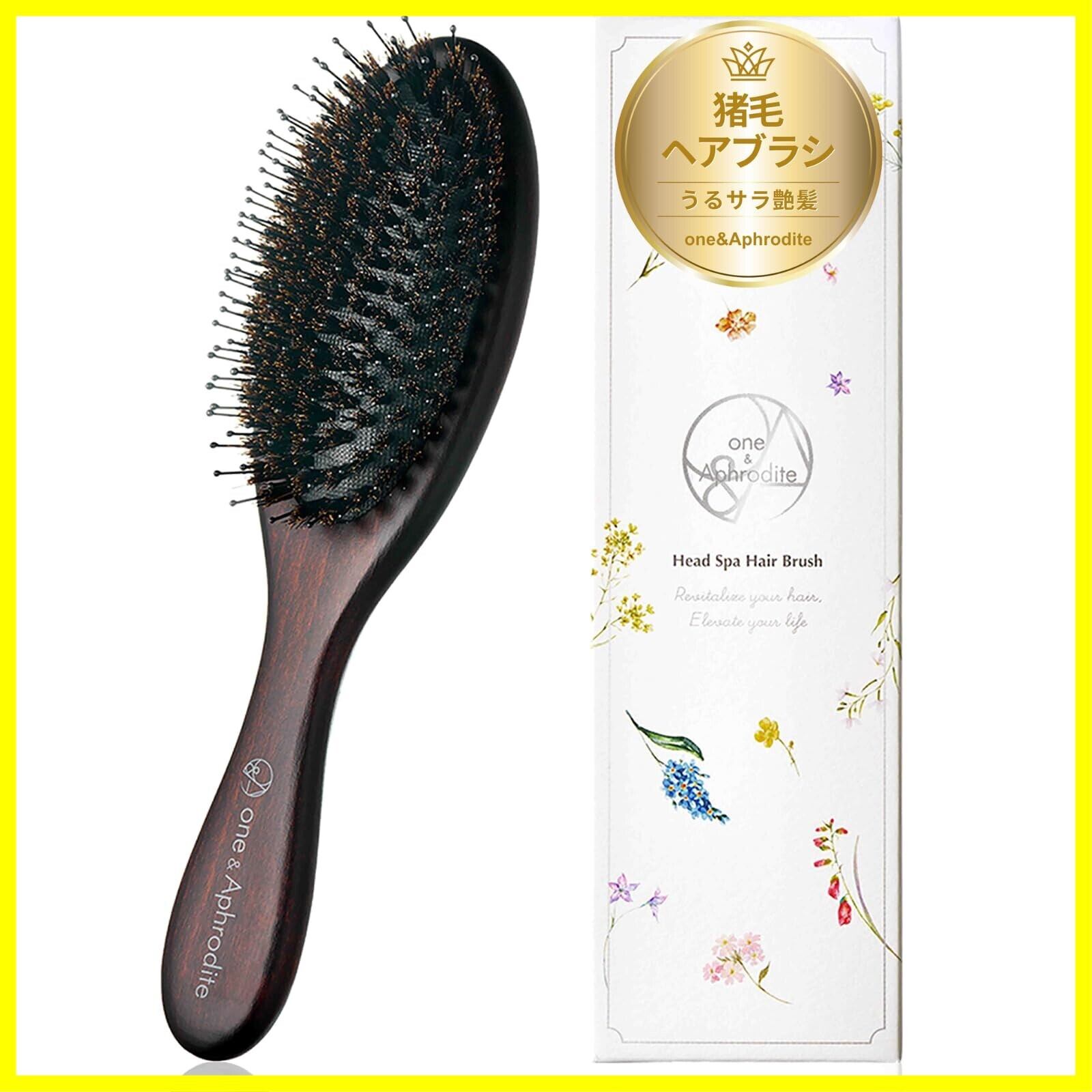 one&Aphrodite 猪毛 ヘアブラシ 高密度 豚毛 くし うねり くせ毛 静電気 頭皮マッサージ 櫛 髪の毛 サラサラ 抜け毛対策