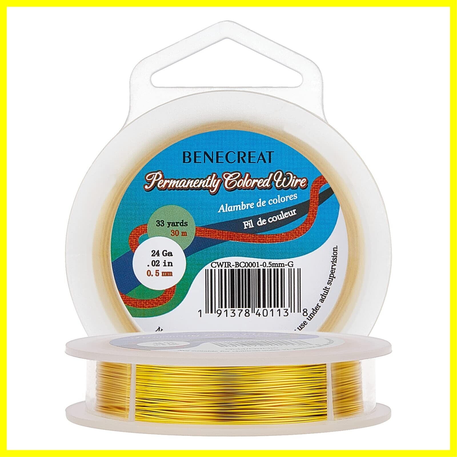 BENECREAT 30m/巻き 線径0.5㎜アクセサリーワイヤー アートワイヤー 光沢 変色防止カッパーワイヤー クラフト銅線 ジュエリー作り 手芸素材 手作り(ゴールド)