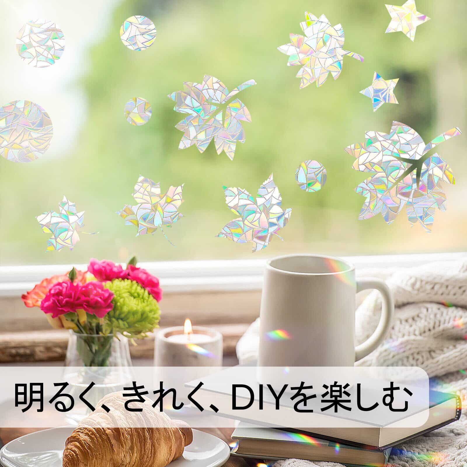 目隠し・UVカット:日差しやライトの光などのあたる所にはれば、虹色になったりし、可視光を反射して目隠しになったりします。光が強ければ強いほどカラフルになります。また、紫外線UVA 84%・UVB99% 以上カットし、際の家具や床材の劣化、肌にもたらす損害を大幅軽減します。要注意:設置の成功は使い方次第です。商品の説明ページの使い方と注意事項を丁寧にお読みください。