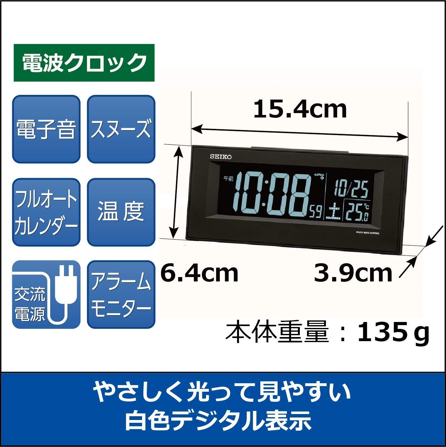 セイコークロック(Seiko Clock) 置き時計 01:黒 本体サイズ:6.4×15.4×3.9cm 目覚まし時計 電波 交流式 デジタル BC413K