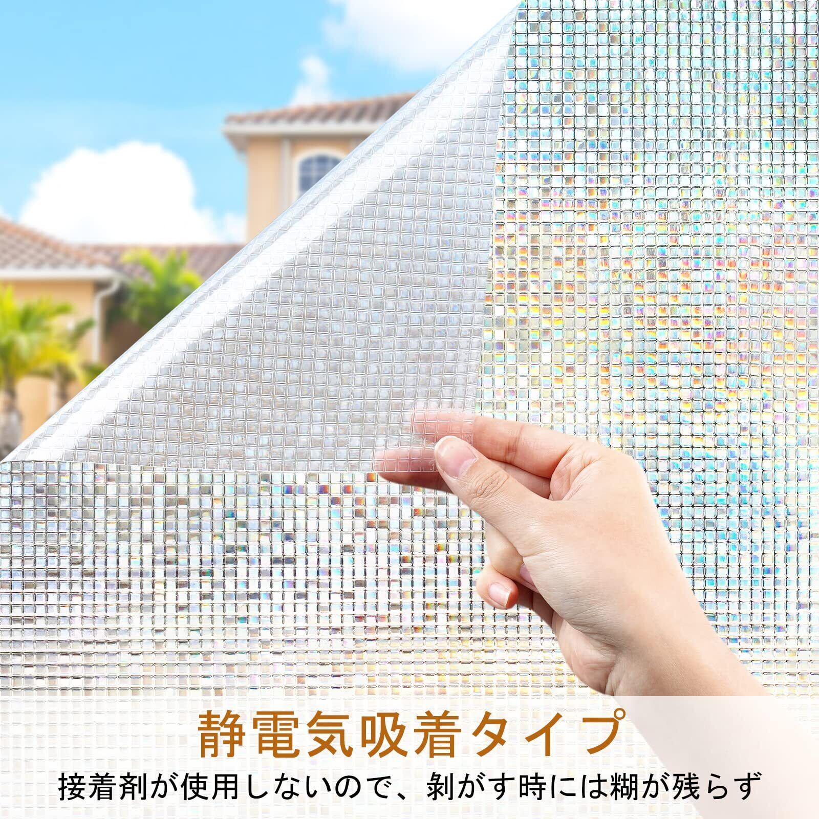 Rabbitgoo 窓ガラス目隠しフィルム 目隠しシート 窓用フィル ガラスフィルム 断熱 リメイク ガラス 飛散防止シート無接着剤 貼ってはがせる 窓用フィルム シール ステンドグラス 窓に貼るカーテン 外から見えない 平たなガラス面に適用 モザイク 結露防止 (湖輝 44.5 x 200cm)