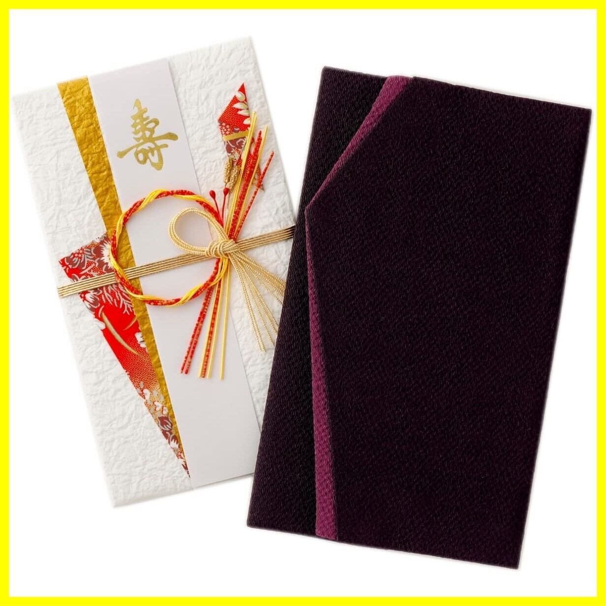 珠音 ふくさ 祝儀袋 セット 慶弔 両用 紫 黒 金封 ちりめん 袱紗 男性 女性 結婚式 香典 日本製 (紫+赤祝儀袋)