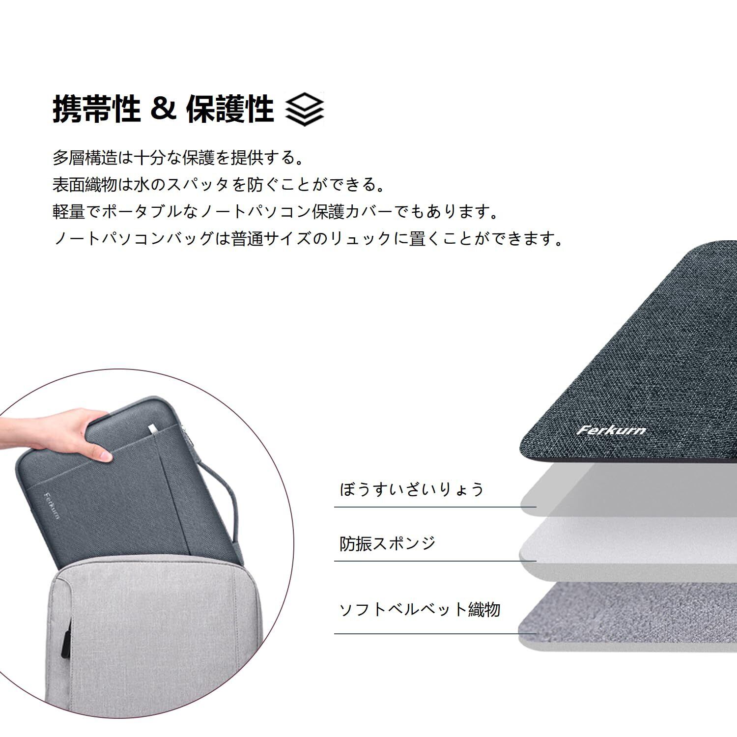 Ferkurn パソコン ケース 11.6 12 12.5 インチ PCケース 衝撃吸収 パソコンバッグ タブレット ケース 撥水加工 手提げカバン パソコンケース 持ち歩き 通勤 ビジネス ラップトップ クロームブック 12.3-13" Surface Pro 9 8 7 X/Surface laptop go 12.4/iPad Pro 12.9/Dynabook C1/NEC Chromebook y3 y2/dell chromebook 3100/Macbook 11 Air 12/Lenovo
