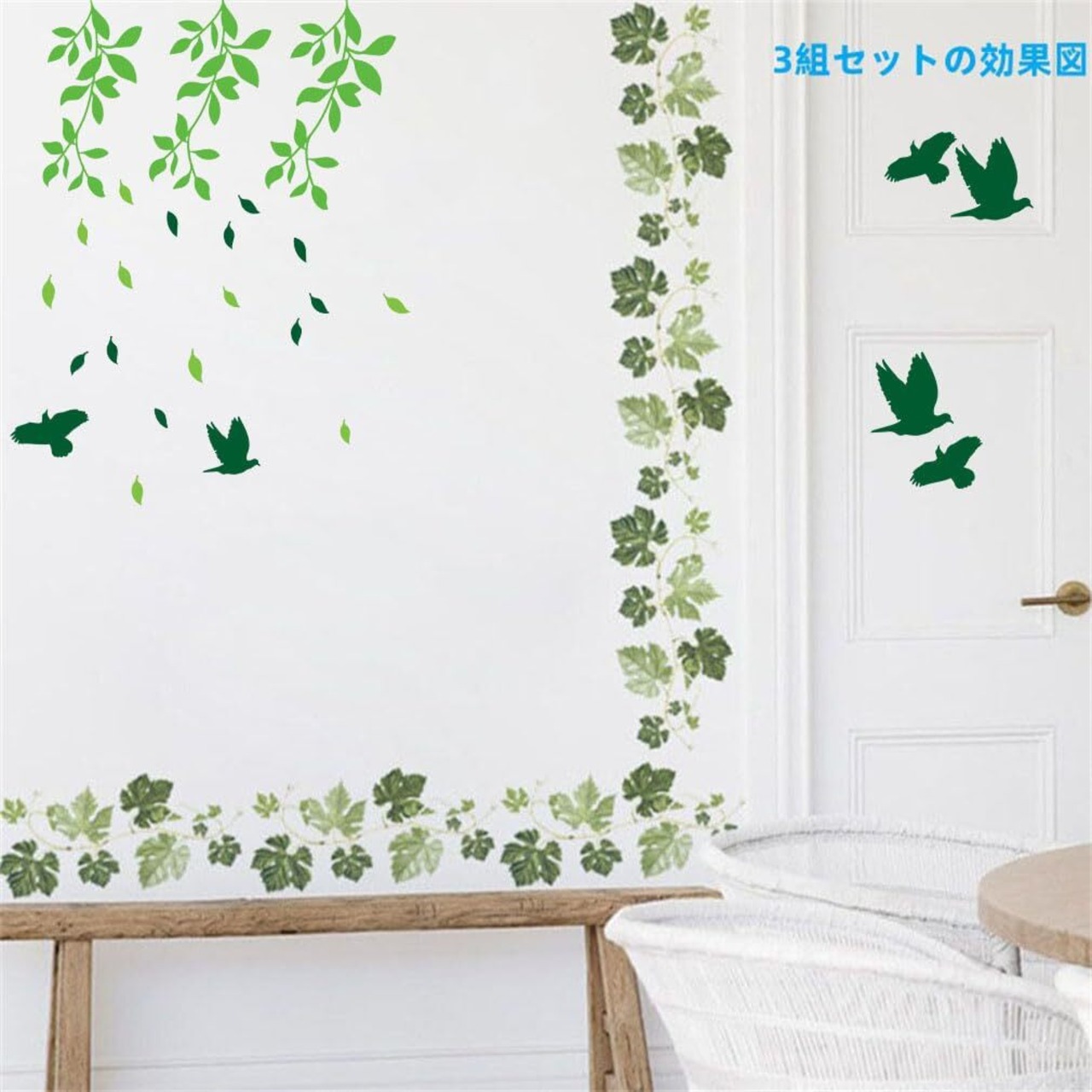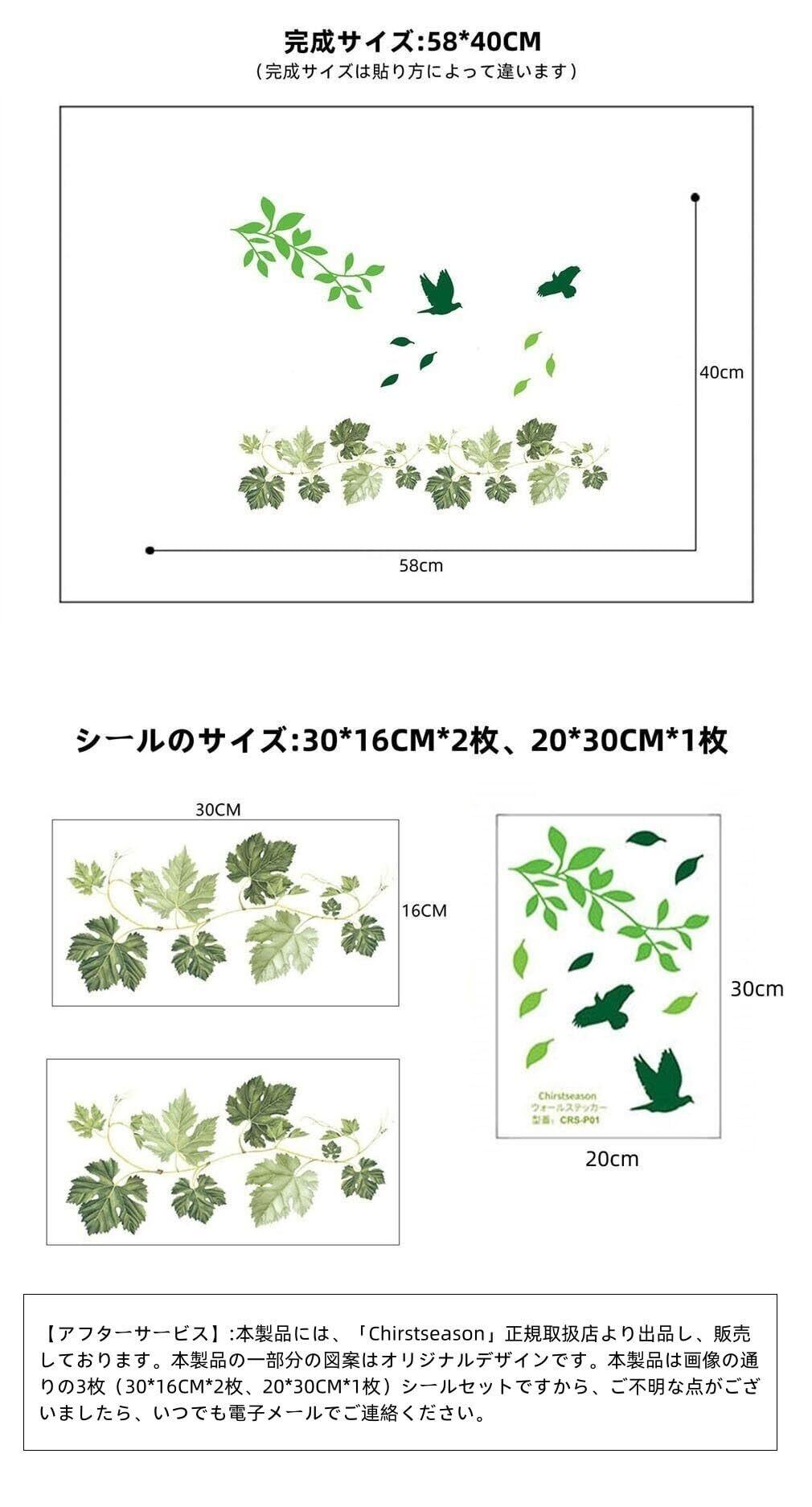 Chirstseason ウォールステッカー 緑 葉の蔓 インテリア リビング 廊下 玄関 店舗 ショーウインドウ ガラスドア 剥がせる 壁紙 シール ウォールシール グリーン