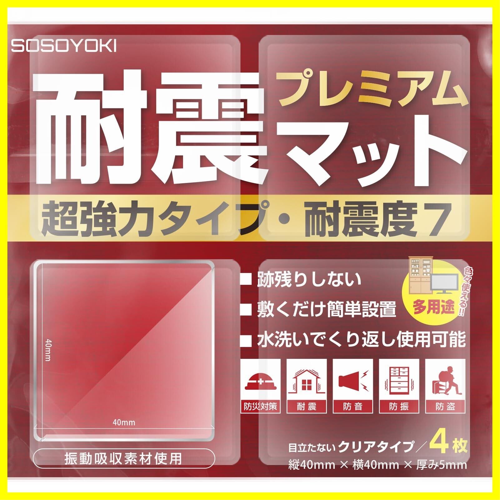 【SOSOYOKI】 耐震マット プレミアム 超強力タイプ 耐震度7 耐震ジェル 耐荷重100kg クリア 4枚入り