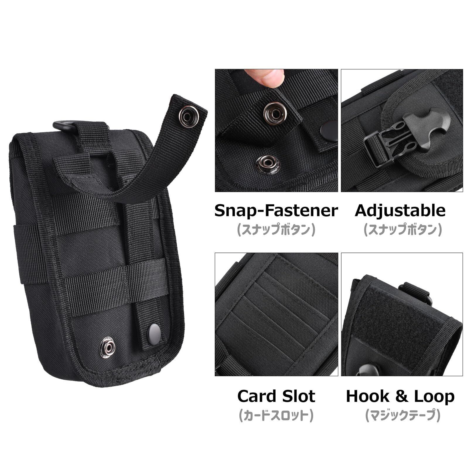 Azarxis スマホポーチ Molle対応 スマートフォン 手帳型 スマホケース モールシステム ユーティリティ EDCポーチ サバゲ― タクティカル ユーティリティポーチ (ブラック)