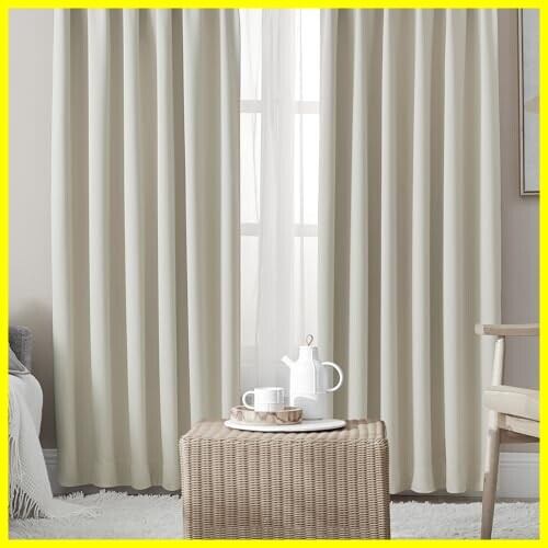 Hansleep カーテン 4枚セット 遮光カーテン 1級遮光 ベージュ 幅100cm丈178cm 断熱 防寒 防音 省エネ 無地 洗える 寝室 リビング用 (ドレープカーテン2枚・レースカーテン2枚)