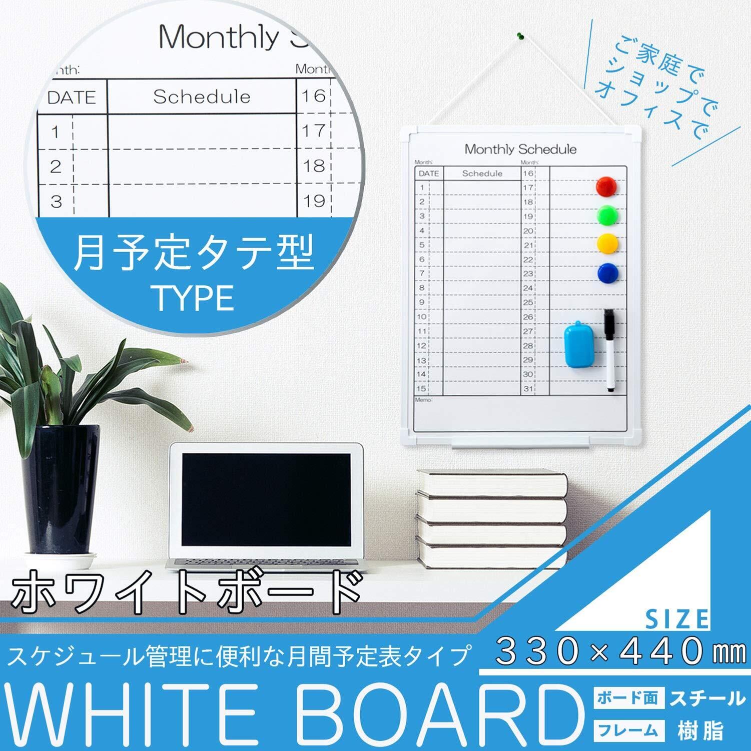 サンケーキコム ホワイトボード 樹脂枠 月予定 タテ型 440mm×330mm WB-4433-MT