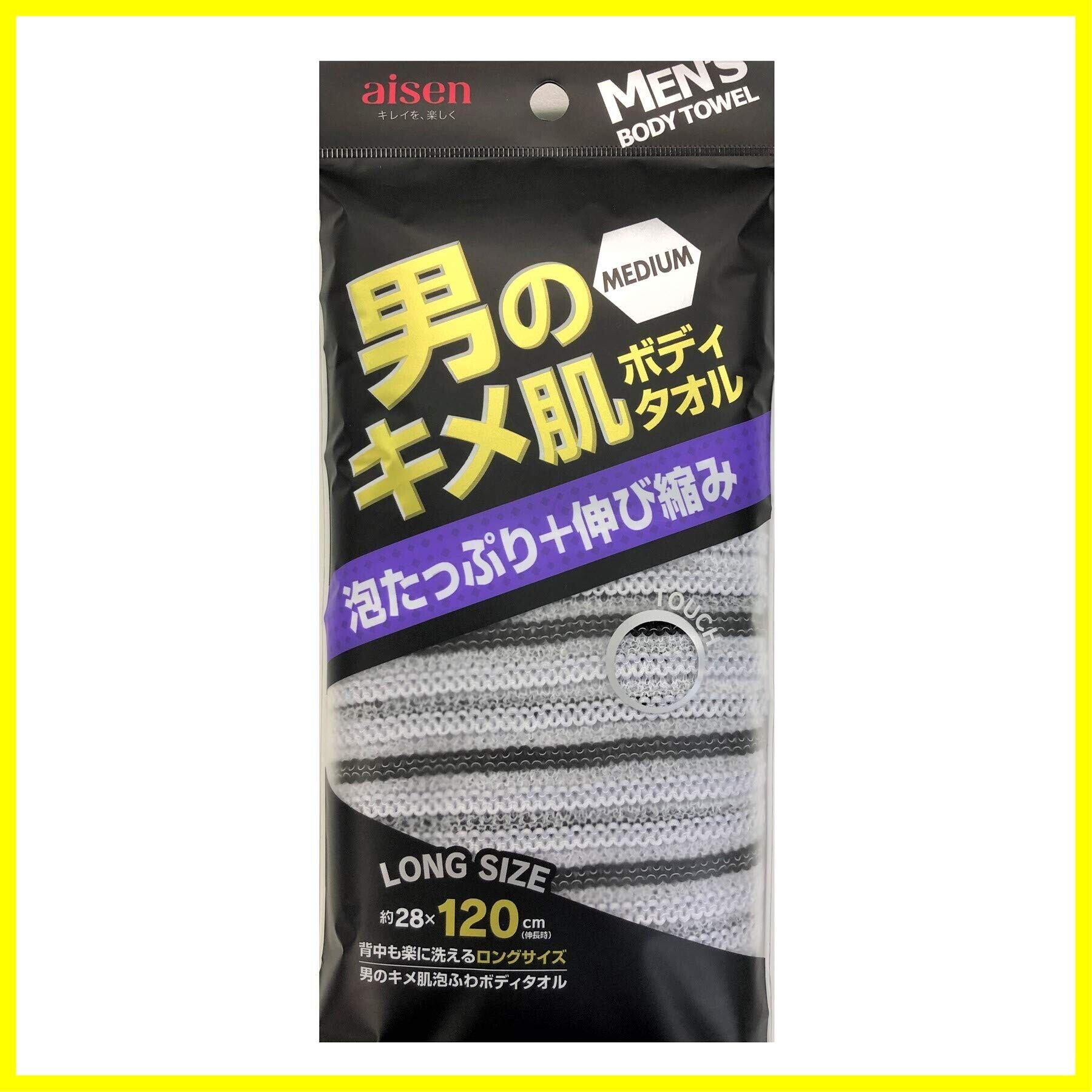 アイセン(AISEN) メンズ ボディタオル 男のキメ肌 泡ふわボディタオル 伸び縮みしてカラダにフィット 伸長時120cmロングサイズ 背中もラクに洗える 肌ざわりふつう BY505, 128mm×45mm×250mm