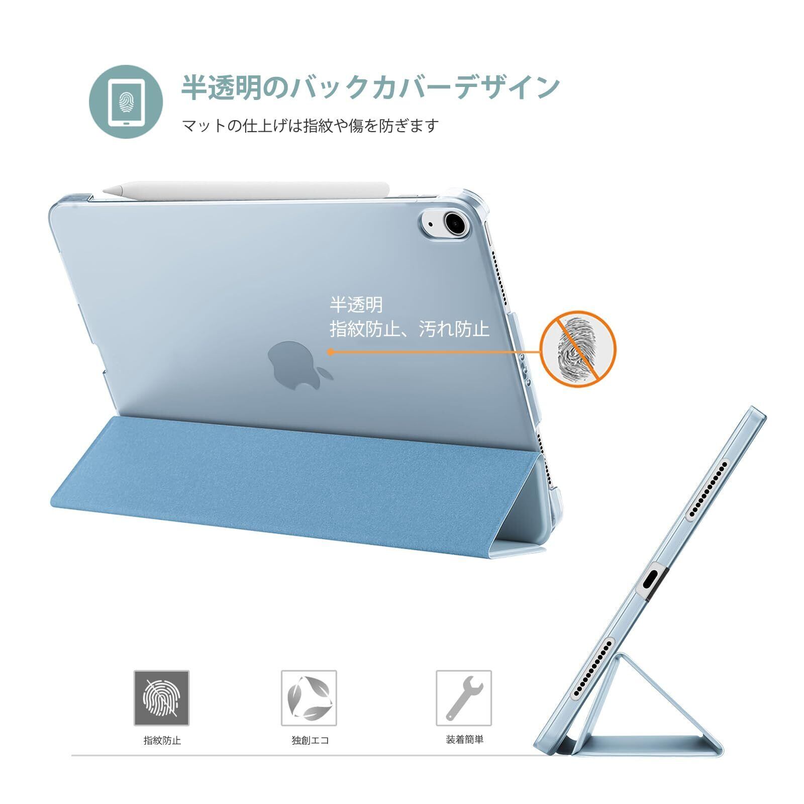 半透明のつや消し背面カバーは、耐衝撃で指紋や傷から保護しながら、iPad本来の美しさをそのまま活かせます。