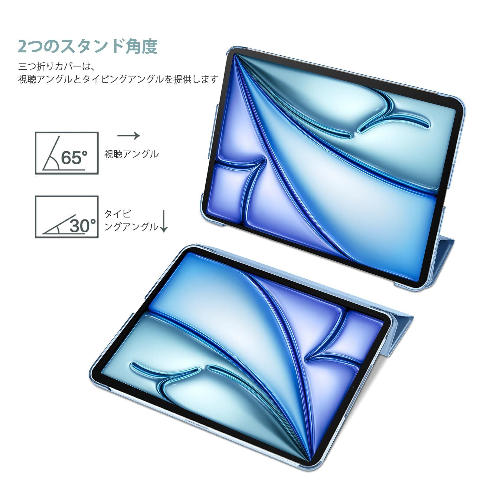 ProCase iPad Air 11インチ ケース M3 (2025) / M2 (2024) / iPad Air 第5世代 / 第4世代 軽量 スタンド 三つ折り フォリオ保護ケース 半透明バックカバー Apple Pencil 2対応 対応端末:iPad air 11インチ M3 (2025)、M2 (2024)、iPad Air5 2022、Air4 2020 - スカイブルー