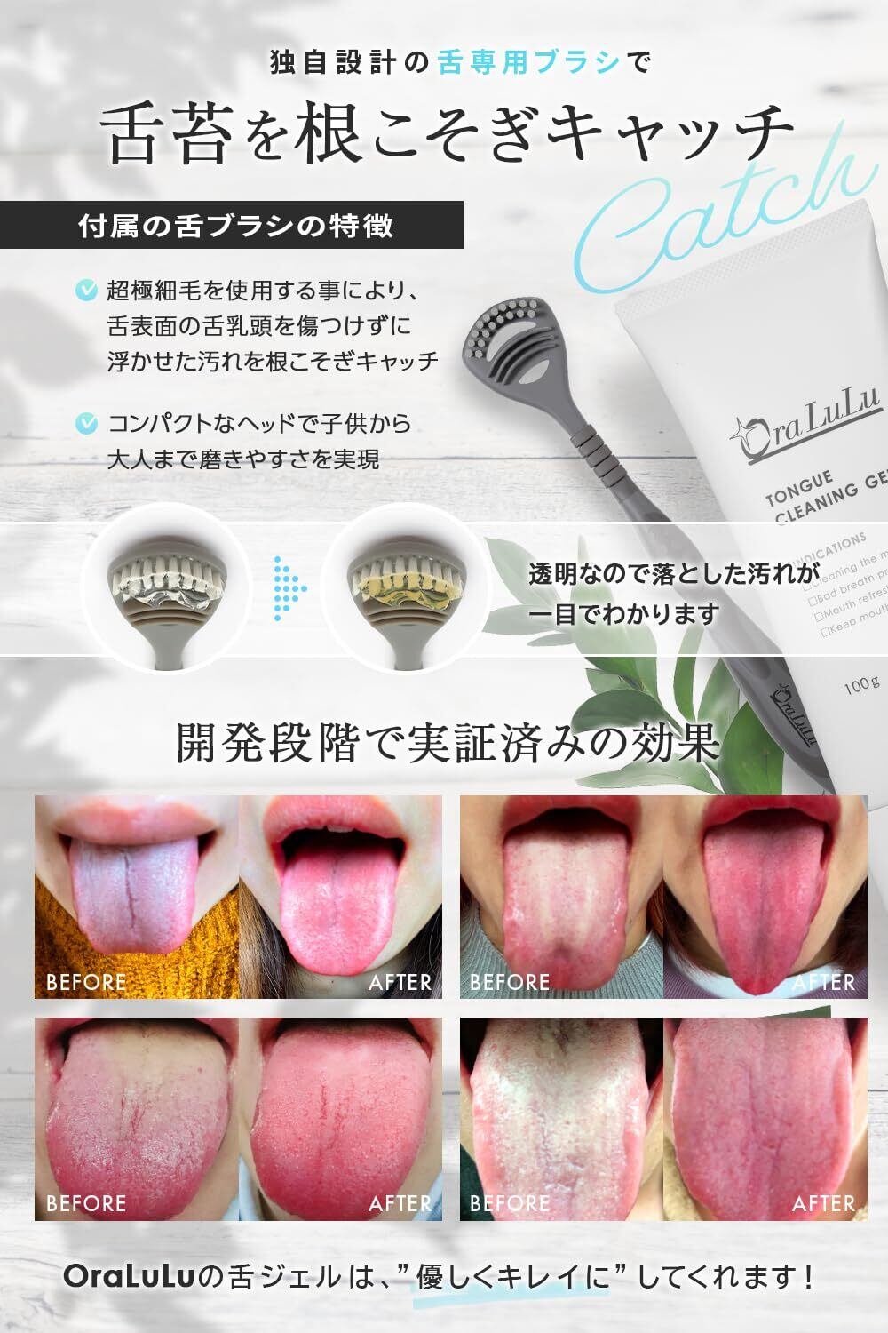 OraLuLu(オーラルル) 舌クリーナー ジェル 舌磨き 舌苔除去 口臭ケア 舌ブラシ セット 100g