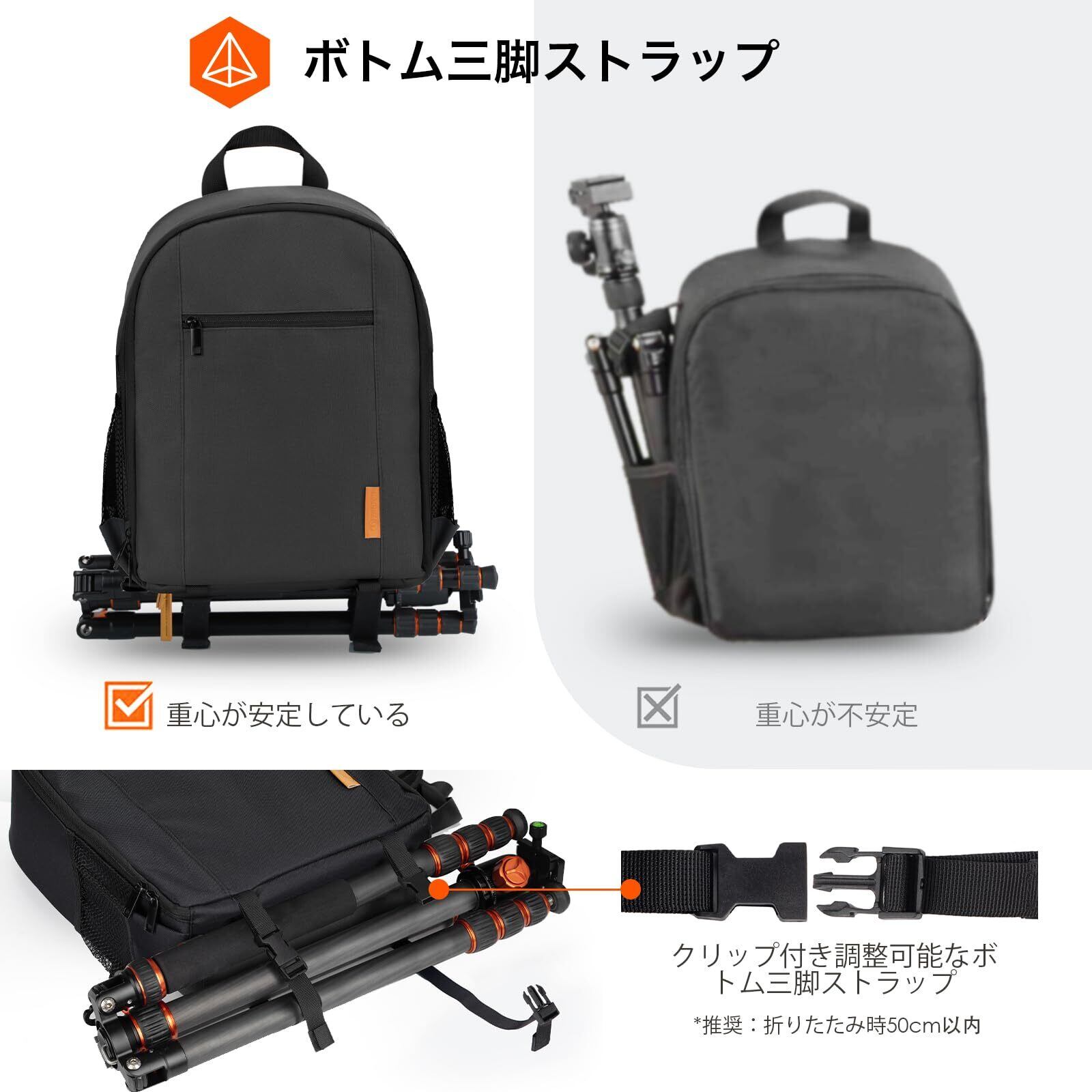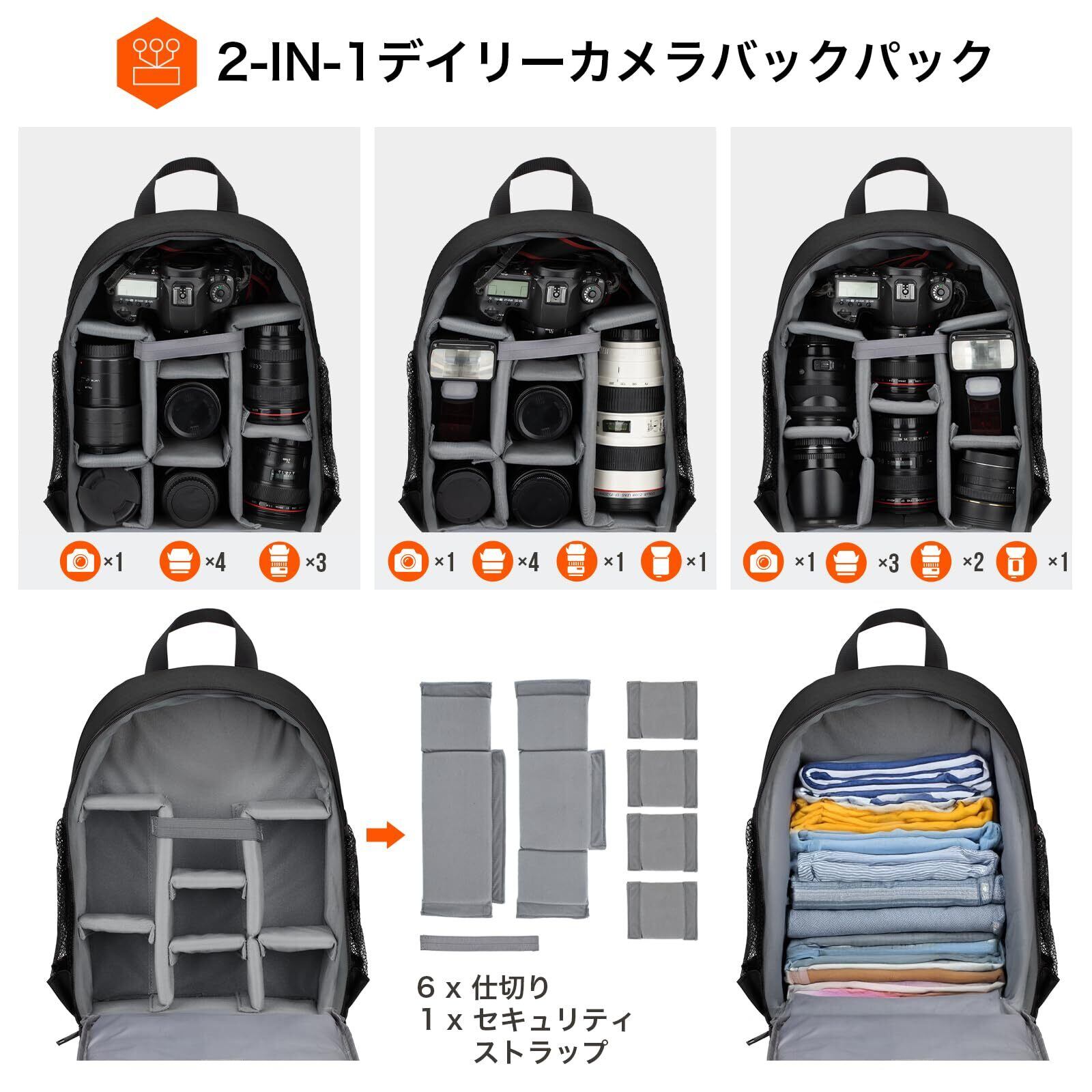 [TARION] カメラバッグ 軽量 コンパクト 十分な容量 三脚収納 カメラバックパック レインカバー付き カメラリュック カメラ バッグ リュック カメラケース 一眼レフカメラ ドローン用 撮影用バッグ 日常用バッグ ブラック TBS