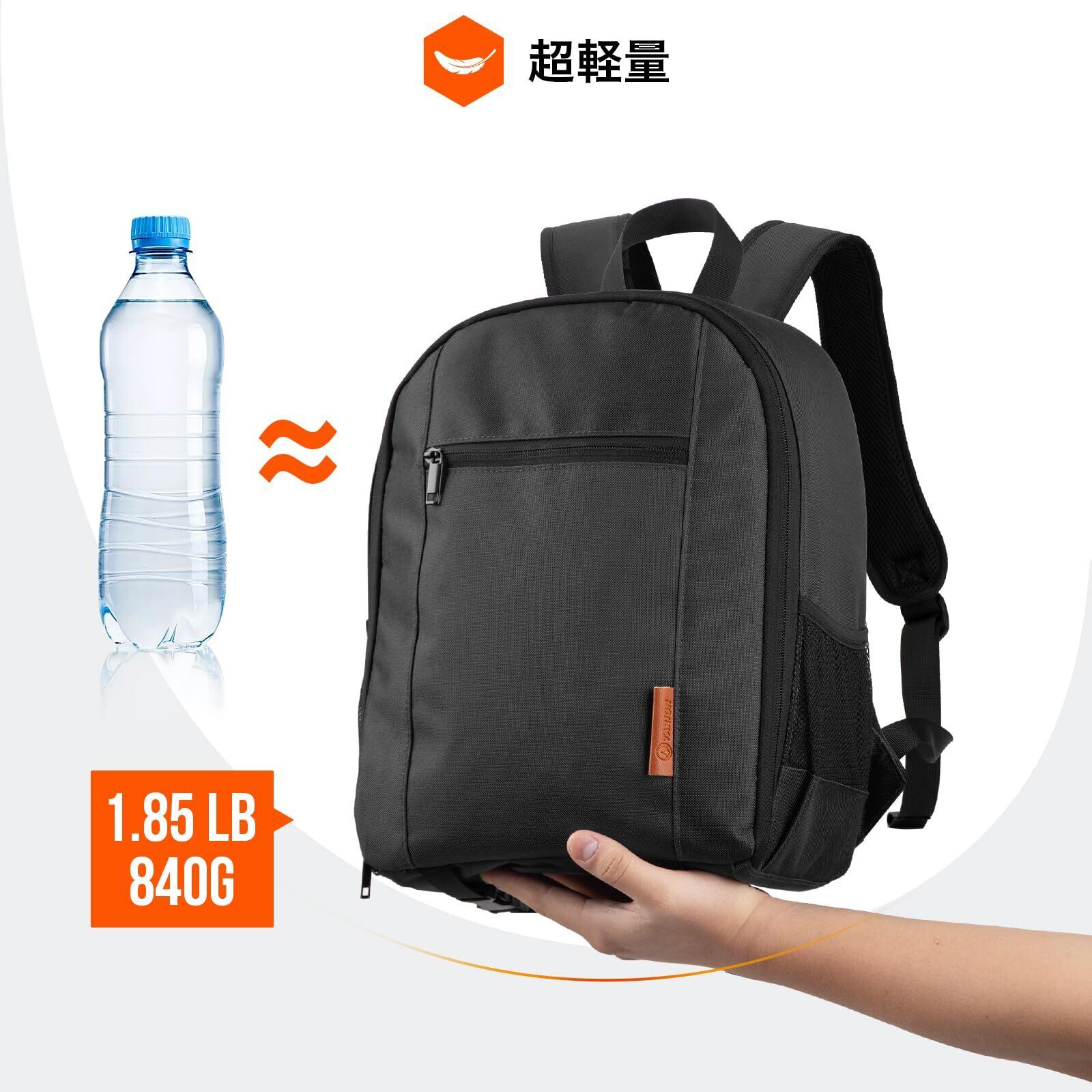 【軽量&コンパクト】外寸は約39cm*29cm*15cmとなります。重量はたった850gとなります。カメラバックパックとして、羽のように軽くて、街撮影にピッタリします。飛行機内に持ち込みするのも可能で、最大限に活用することができます。
