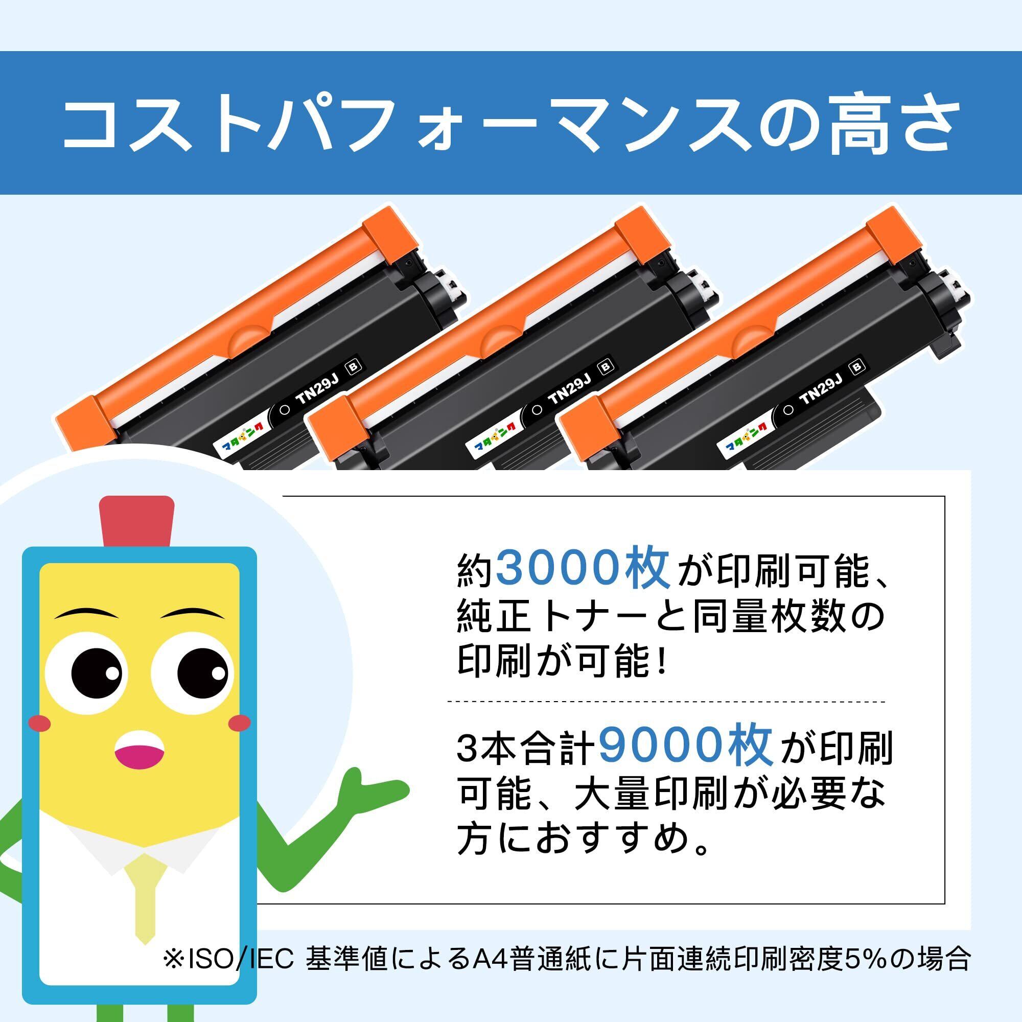マタインク TN-29J 互換トナーカートリッジ ブラザー(Brother)対応 TN29J 29J ブラック 3本セット 対応機種:MFC-L2750DW MFC-L2730DN DCP-L2550DW DCP-L2535D FAX-L2710DN HL-L2375DW HL-L2370DN HL-L2330D 大容量 残量表示 個包装