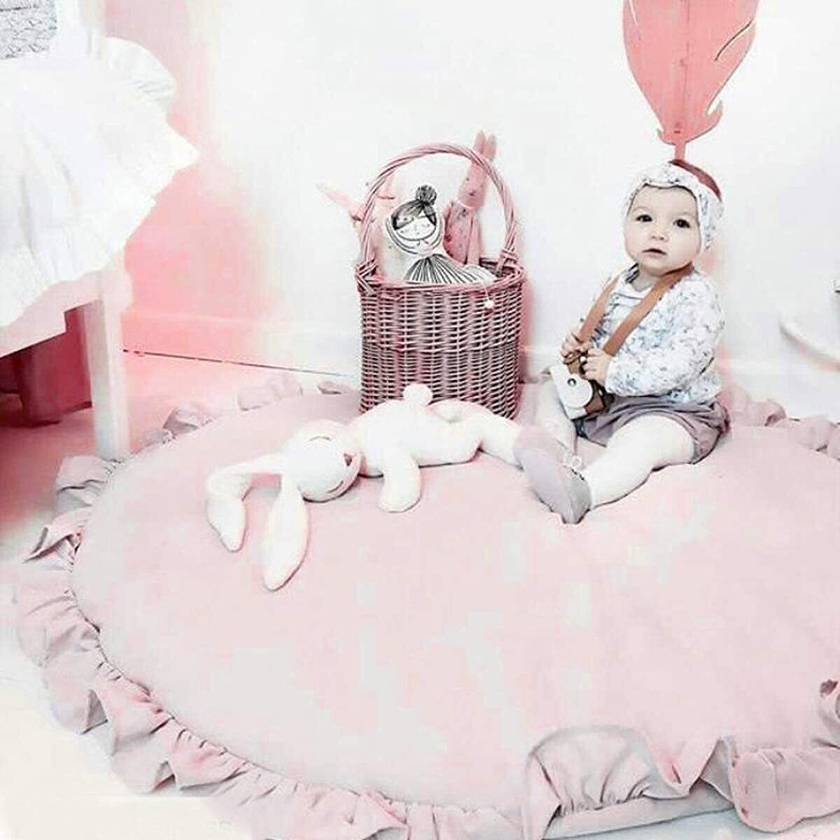 ORFINA ベビープレイマット 円形 ベビーマット おしゃれ 遊びマット ラグマット サークルマット ベビークロールマット 柔らかい 綿 毛布レース パッド 超ソフト 四季兼用 水洗い可能 取り外し可能 ふんわり 厚手 赤ちゃん ギフト ベビー 赤ちゃん キッズ 抗菌加工 約直径100cm ファスナー付き (ピンク)