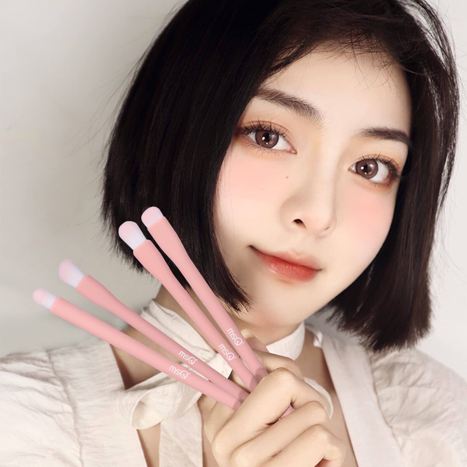 MSQ アイシャドウ ブラシ 6本セット メイクブラシ 高度なアイシャドウ ブラシ 化粧 筆 高級繊維毛 超柔らかい 日常の化粧 携帯便利 敏感肌適用(ピンク)