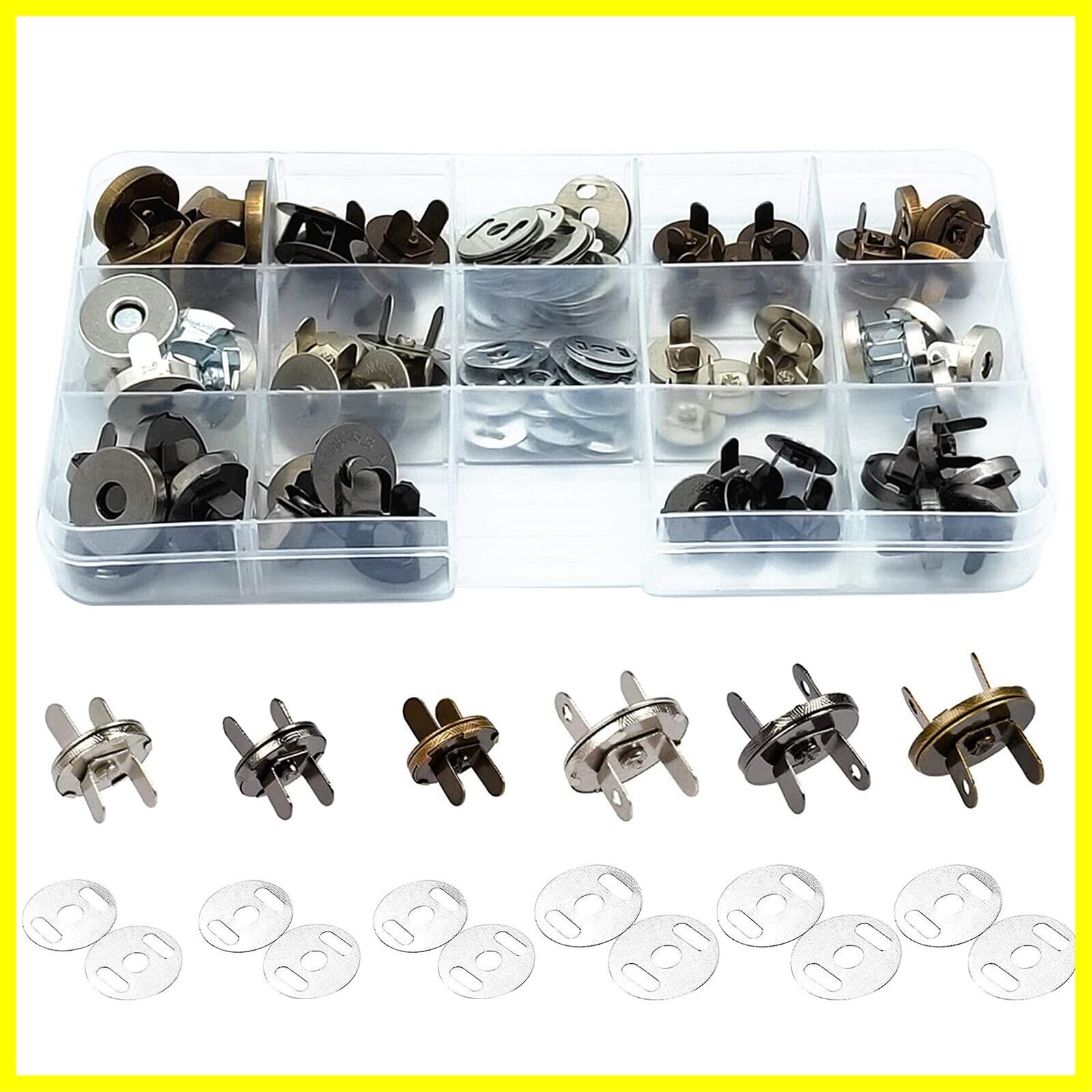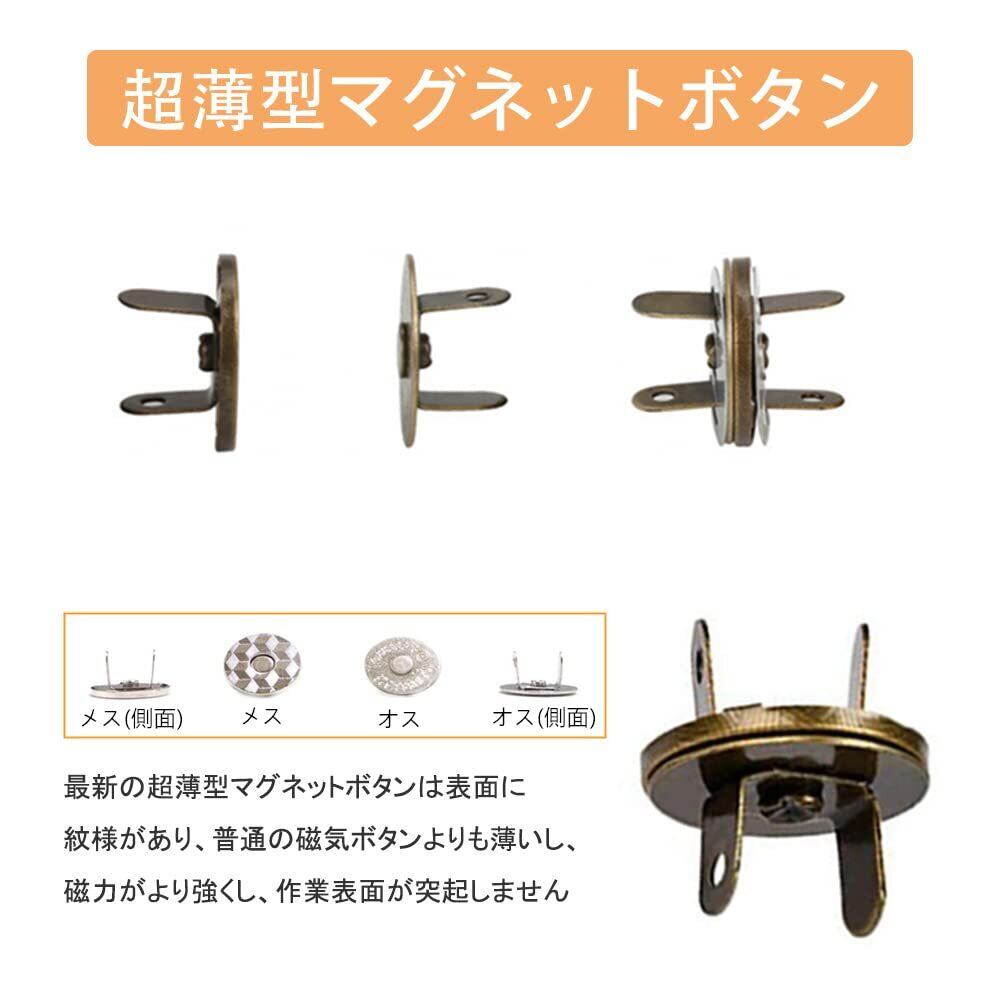 【セット内容】マグネットボタン 30個 セット、5個× 14mm&18mmシルバー、5 個× 14mm&18mmガンメタル、5 個×14mm&18mm古銅色(オスとメス、留め具2枚で1個セットです)各5個セット6種類で30個が収納ケースに入っています。