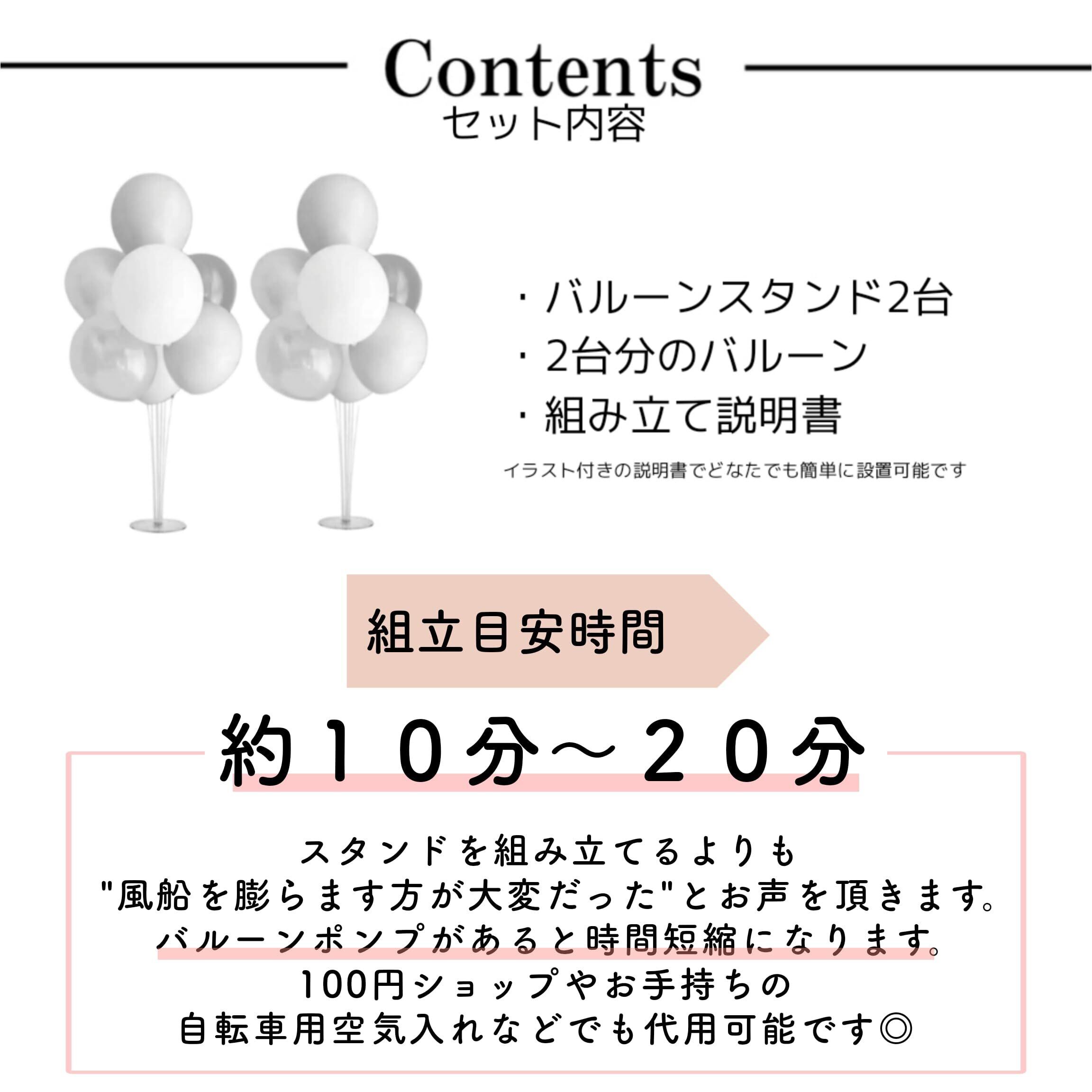 スタンド2台と風船付きで届いてすぐに飾り付けが可能です