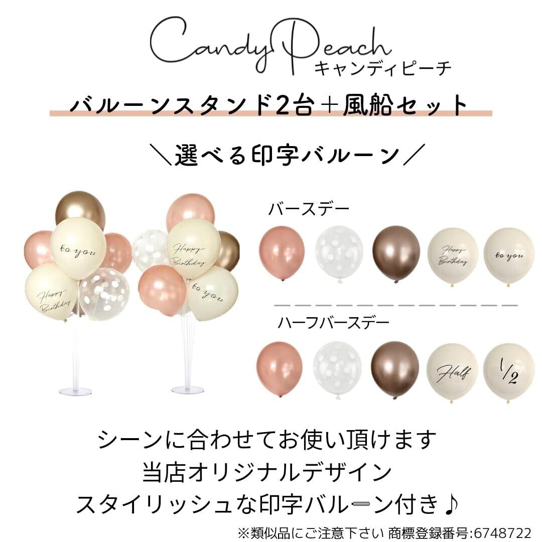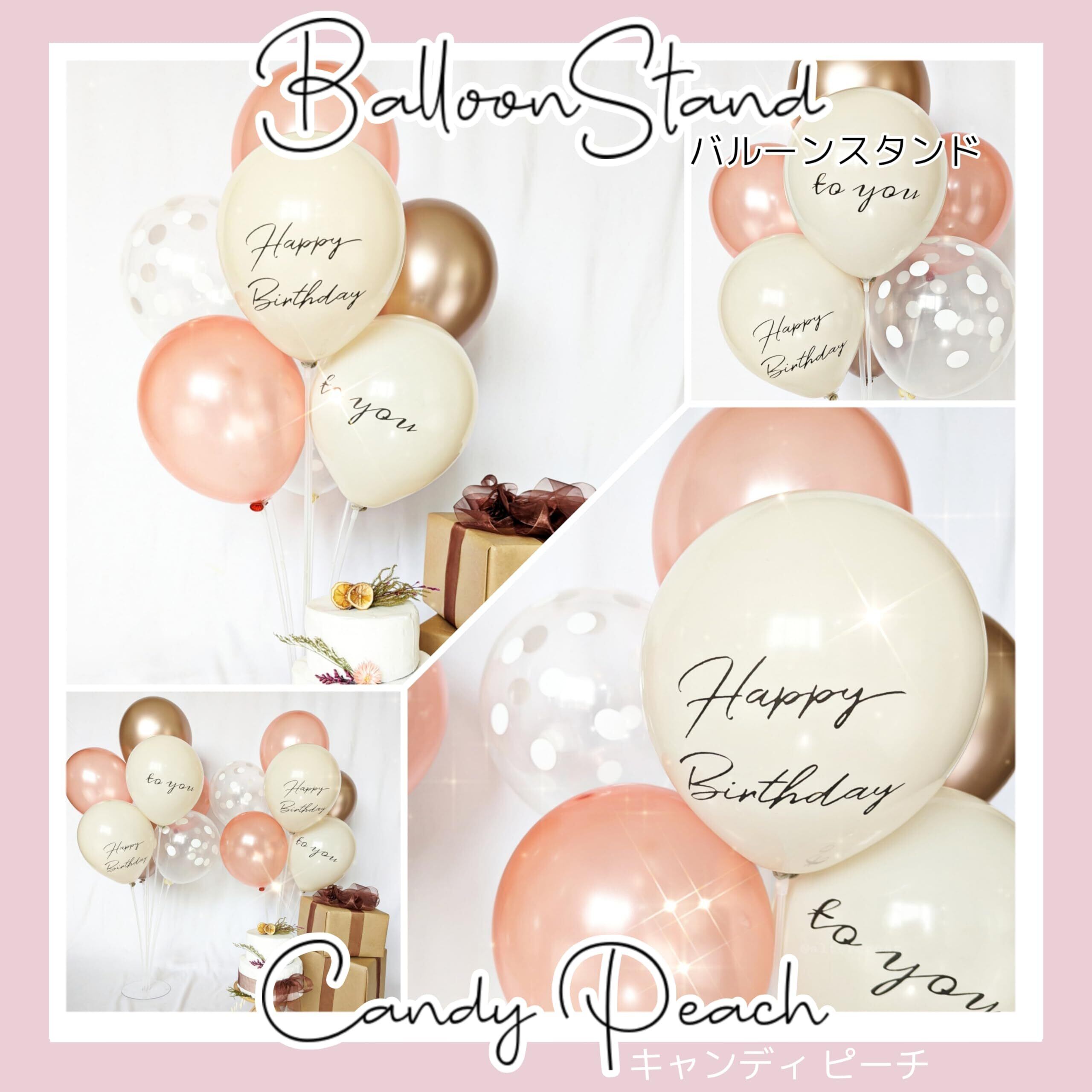 【2台+風船セット】バルーンスタンド 風船 セット バルーン 飾り 誕生日 飾り付け バースデー くすみカラー 棒 白 ピンク ブルー ゴールド 1歳 ハーフバースデー ファーストバースデー (キャンディピーチ, スタンド付き)