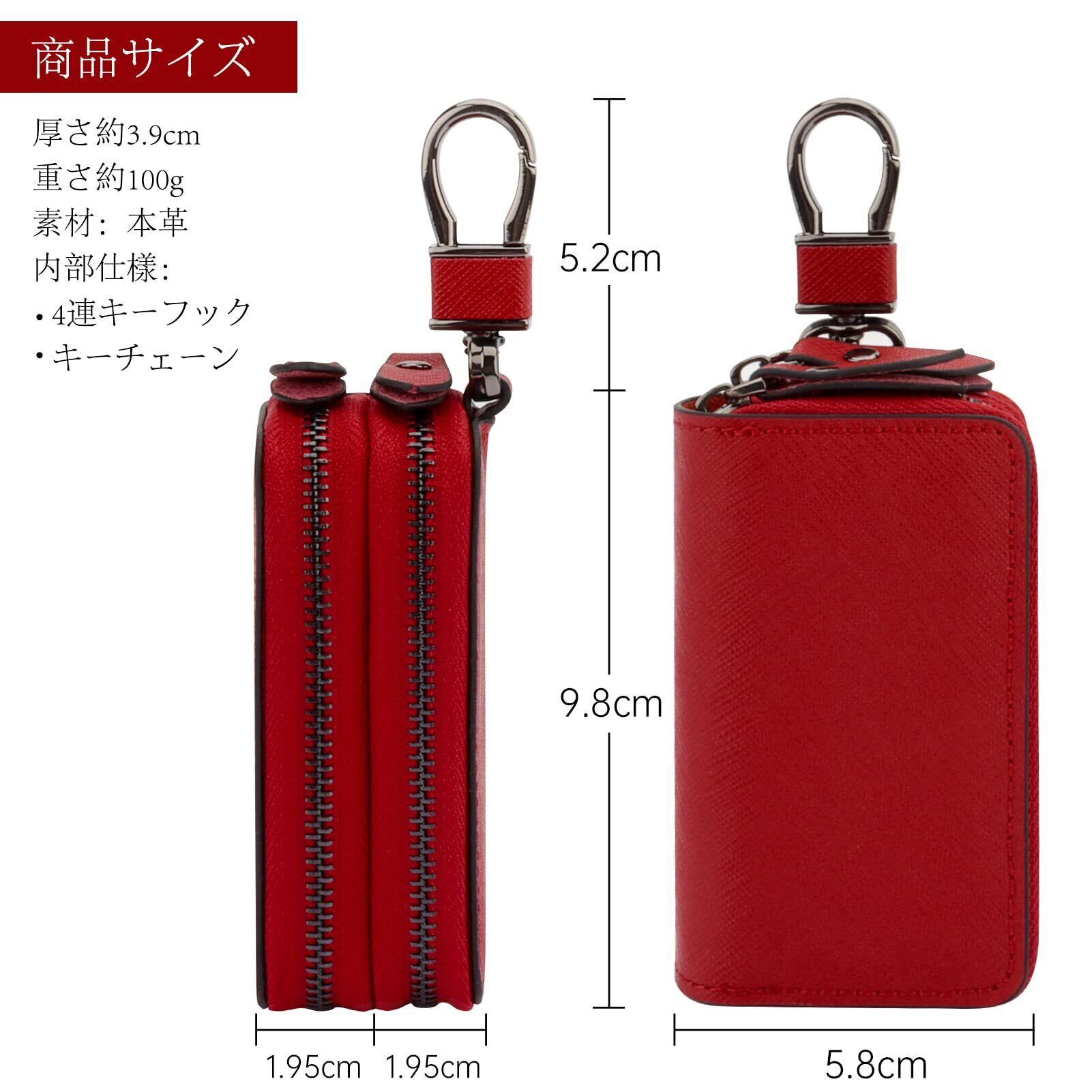 [AYOBEI] キーケース メンズ レディース スマートキーケース 2つ 鍵が同時収納 キーケース ダブルポケット 革 多機能 便利 (レッド)