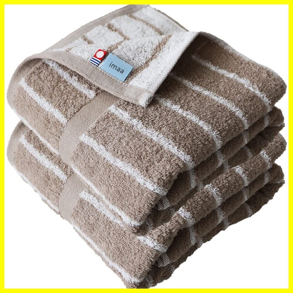 imaa(アイマ) 今治タオル 認定 バスタオル ふわふわ 薄手 吸水速乾 日本製 綿100% 真空圧縮パック Stripeライトブラウン2枚