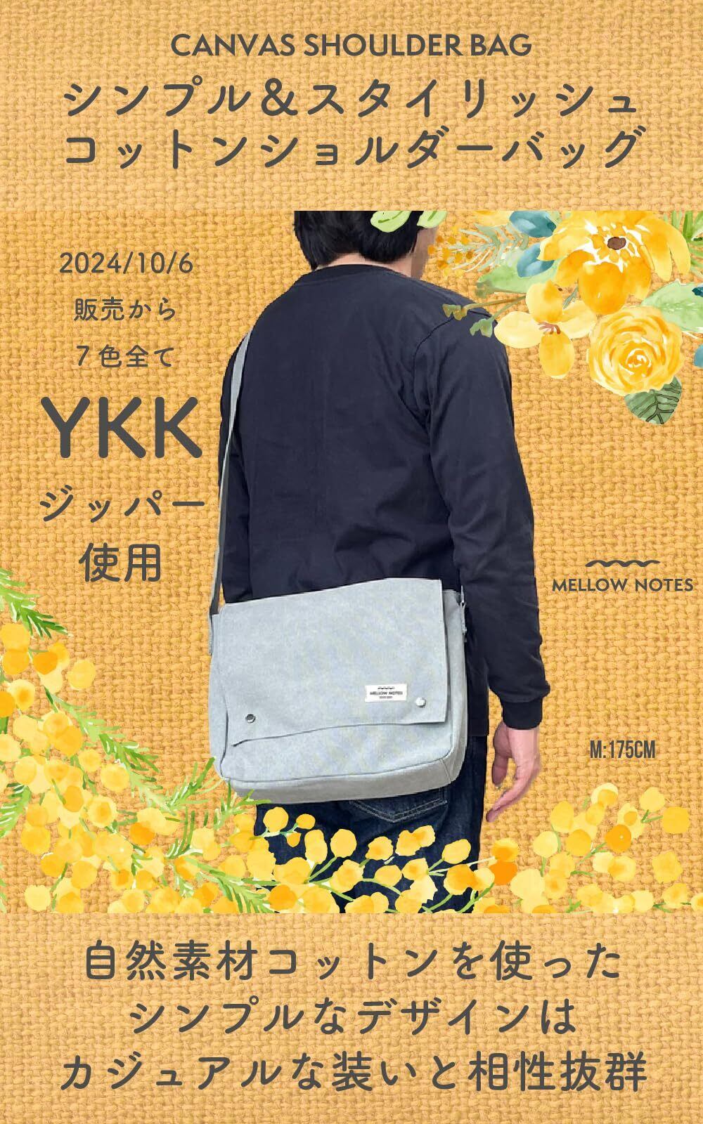 [MELLOW NOTES] [メローノーツ] ショルダーバッグ メンズ ショルダー バッグ 肩掛け メッセンジャーバッグ YKK 斜めがけ 帆布 キャンバス a4 シンプル カジュアル 人気