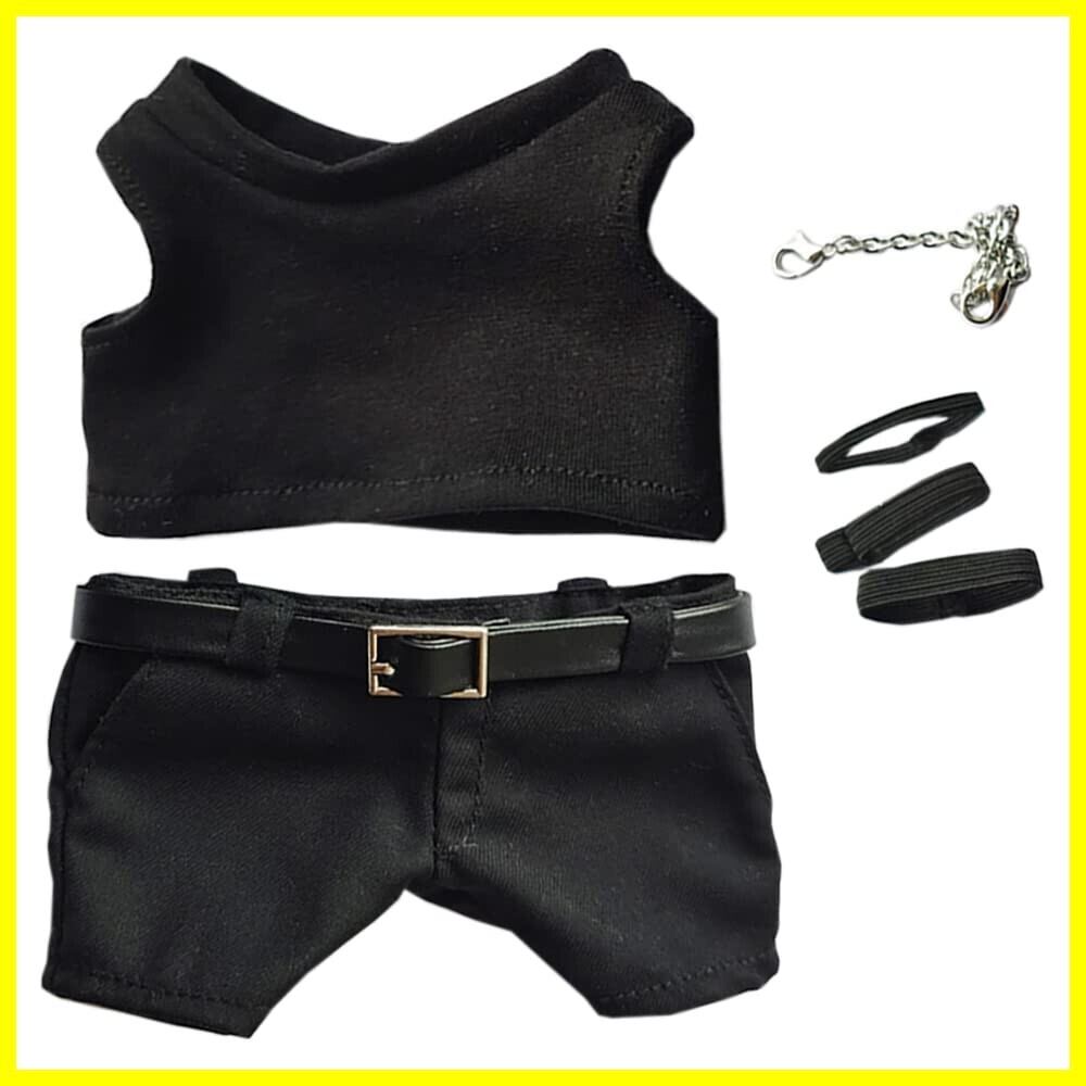 niannyyhouse 20cm綿人形の服 黒 ベスト ズボン ベルト 付属品 ぬいぐるみ 服 着せ替え