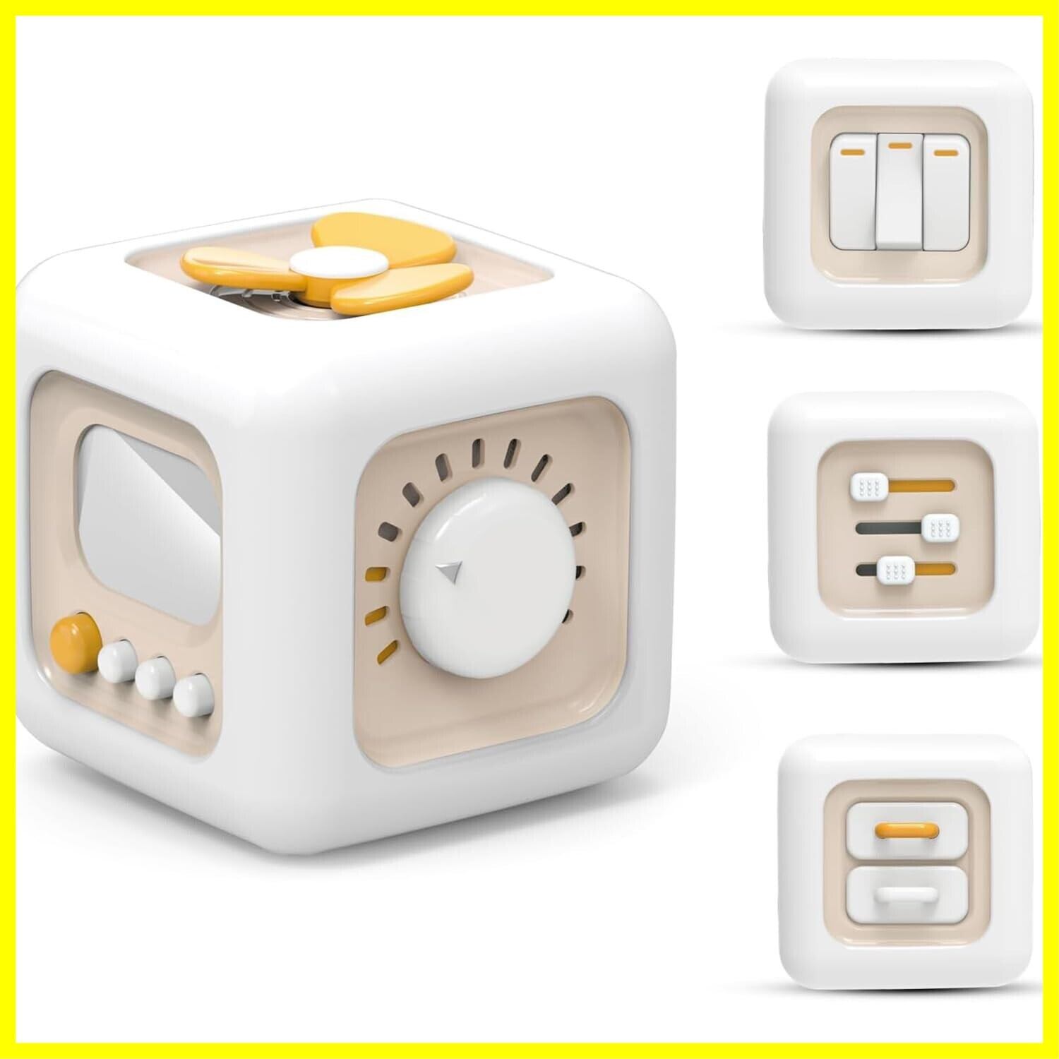 【6-in-1知育おもちゃ】このインタラクティブなビジーキューブは6つの学習アクティビティを備えています。1歳の男の子や女の子向けのモンテッソーリおもちゃ。