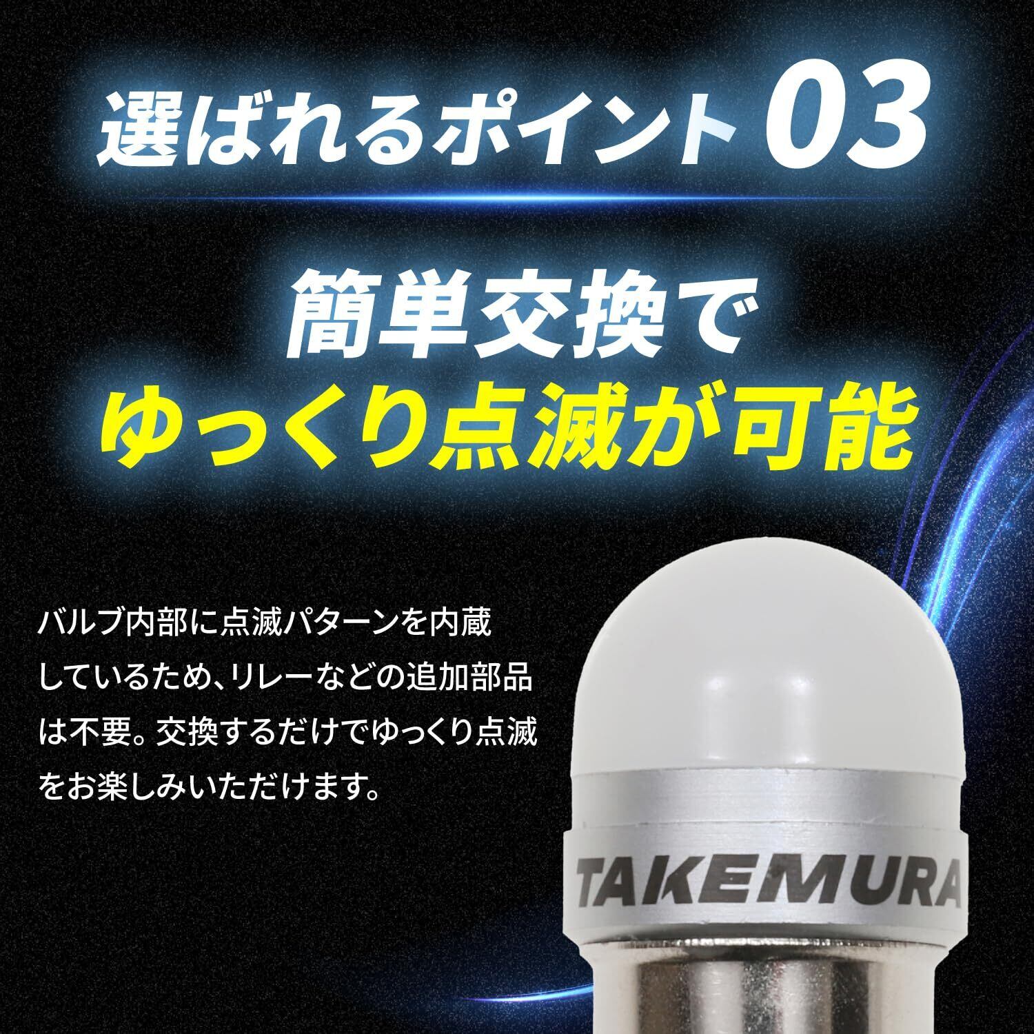 【簡単交換でゆっくり点滅が可能】 バルブ内部に点滅パターンを内蔵しているため、リレーなどの追加部品は不要。 交換するだけでゆっくり点滅をお楽しみいただけます。