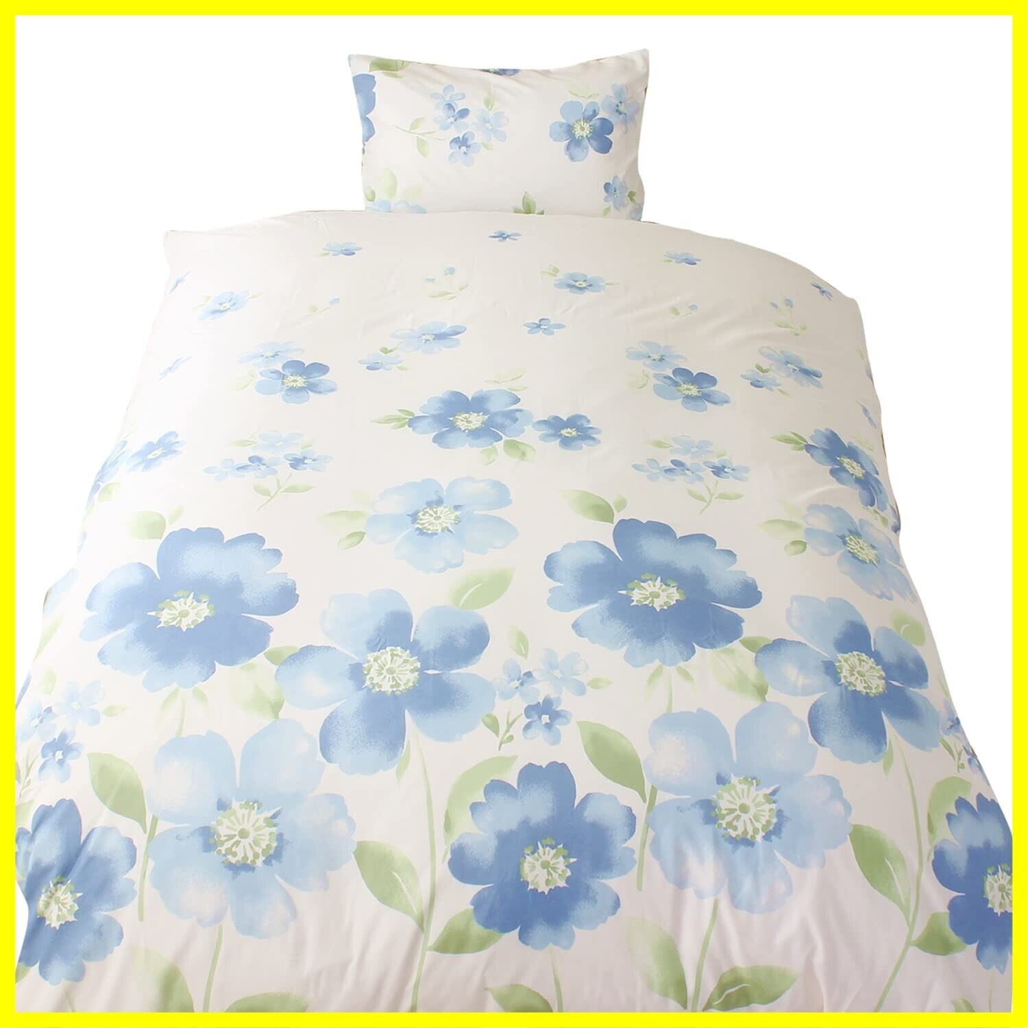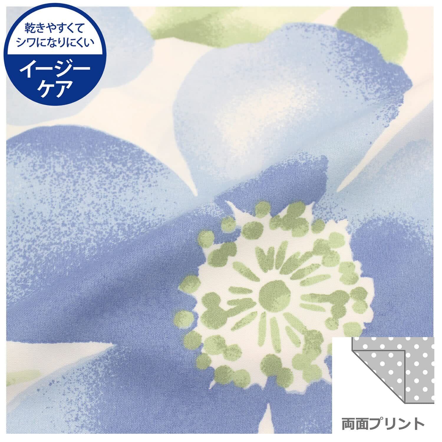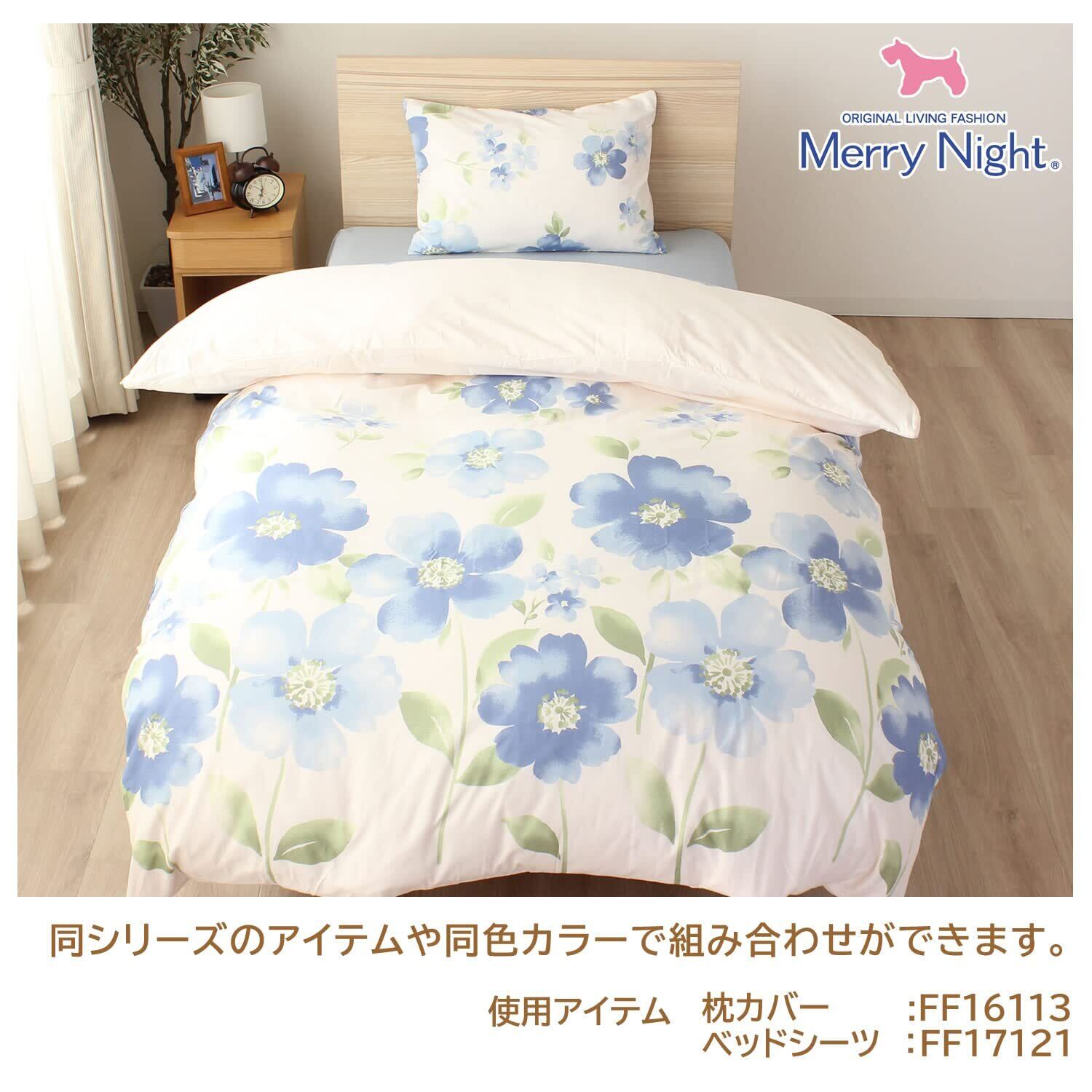 メリーナイト(Merry Night) 掛け布団カバー 「水彩フラワー」 ブルー シングルロング 約150×210cm 両サイドファスナー ふとんが入れやすい 洗える シワになりにくい FF12113-76