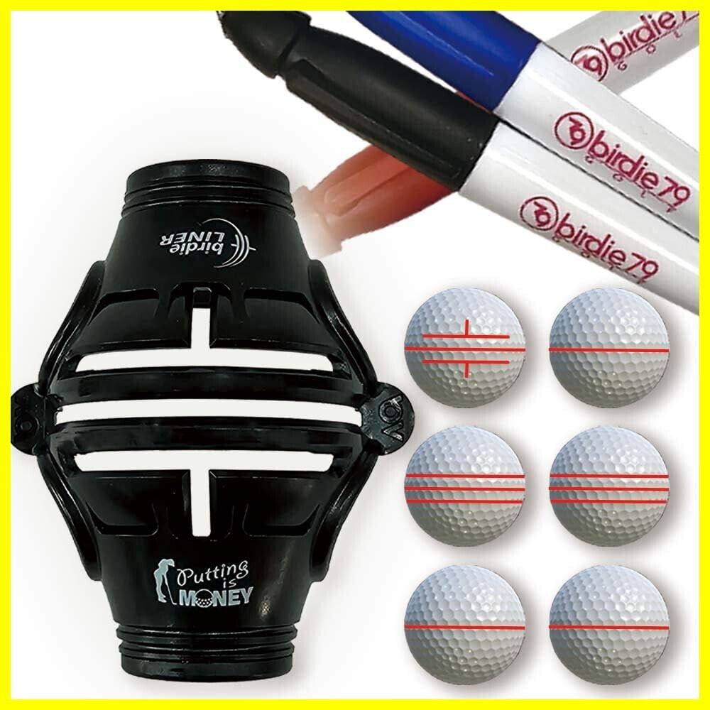 BIRDIE79 予算に優しいナチュラルライナーゴルフボールマーカー - 360° 3本ラインステンシル マーカーペン3本付き