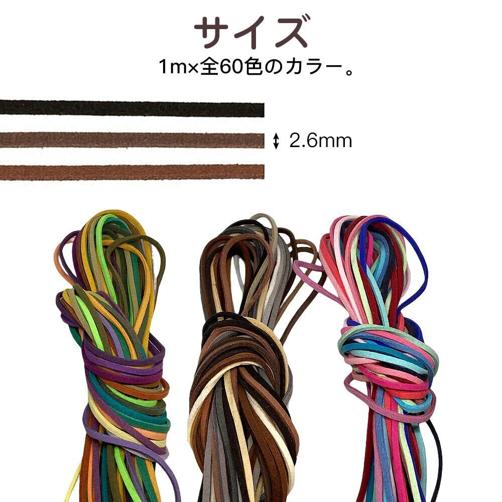 LIANHATA スエード 革紐 1m×60色セット カラフル 合成皮革 かわひも 革ひも DIY レザー 紐 クラフト アクセサリーパーツ ジュエリー ビーズ ブレスレット ネックレス用 (60色*1m)