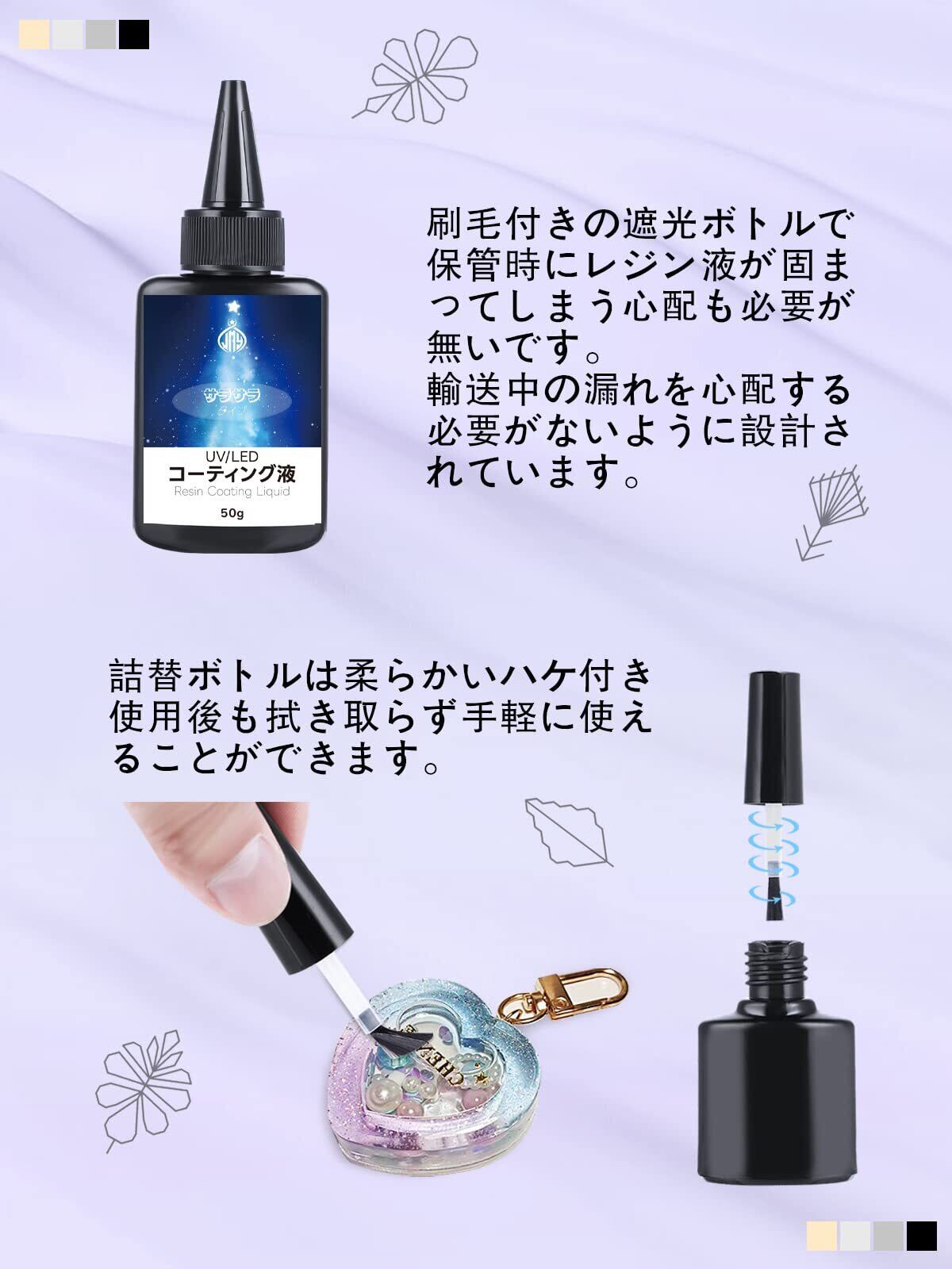 JieMinya コーティングレジン液 コーティングレジン剤 さらさら 50g 大容量 UV-LED
