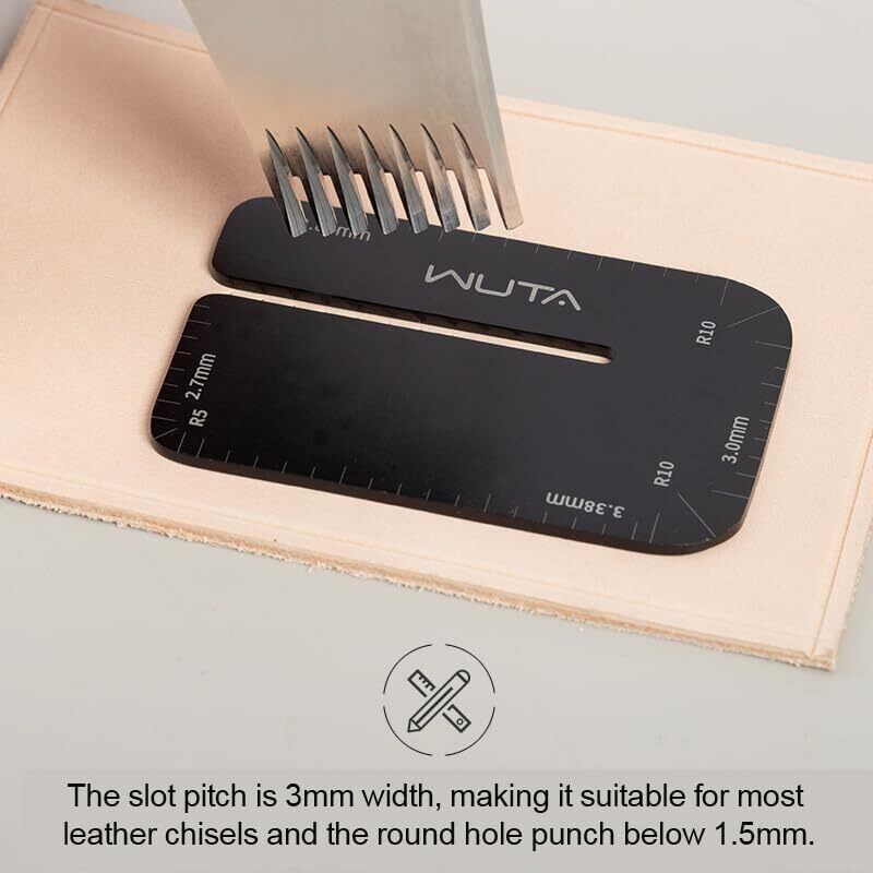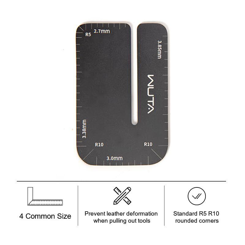この小さな補助板で、革を保護しながら、簡単かつ迅速に、正確できれいな穴や溝を開けることができます。