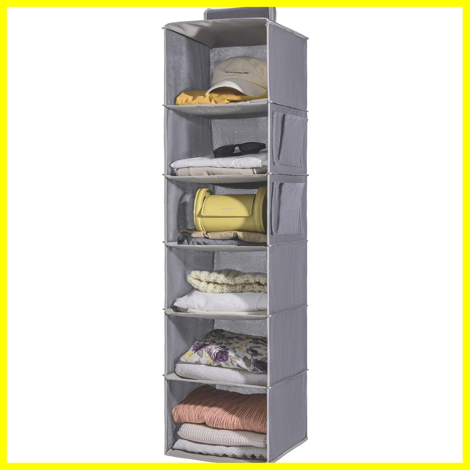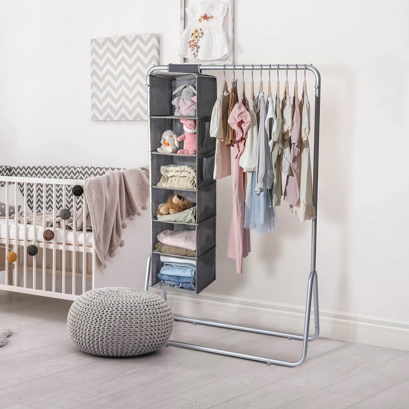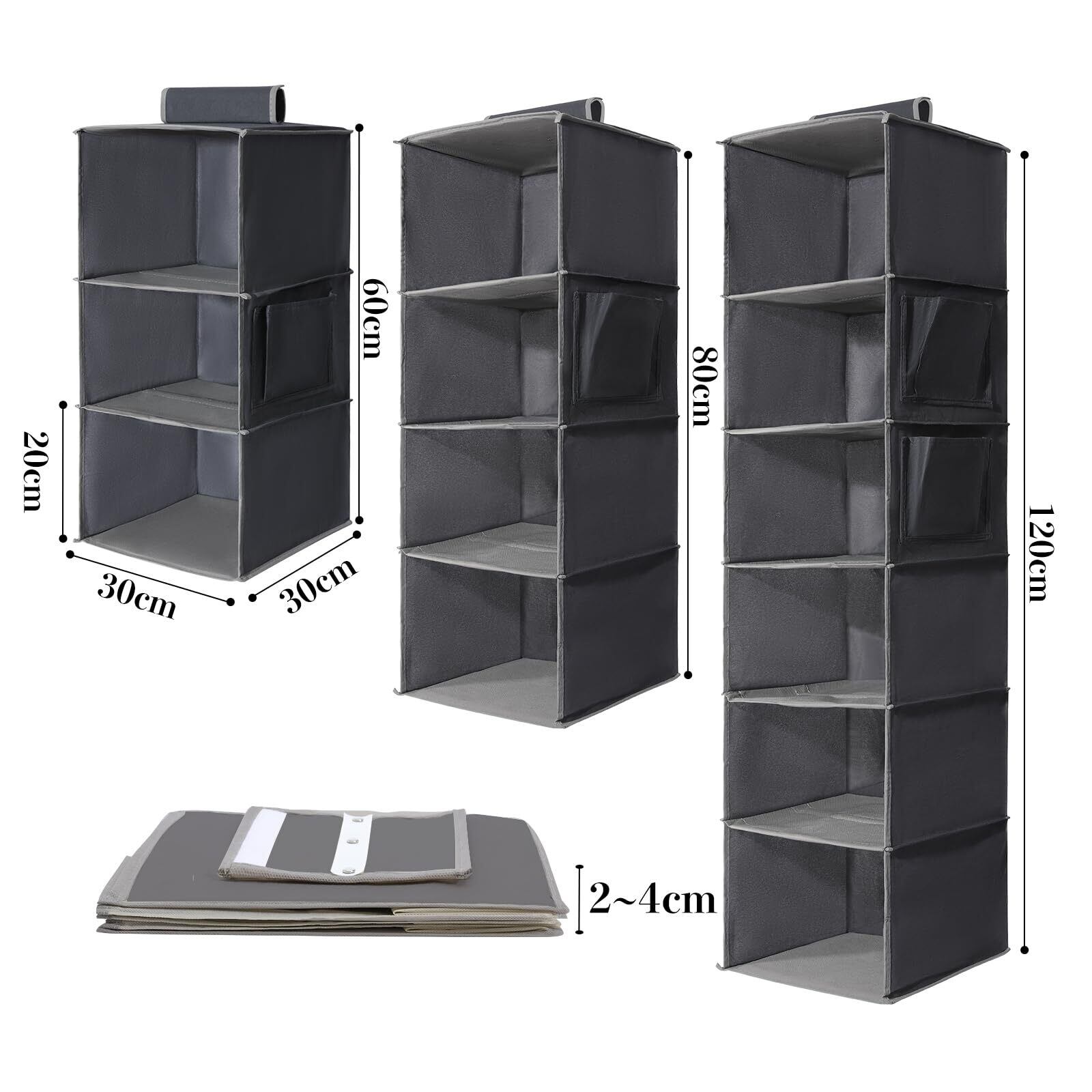 YRCBEHFU 吊り下げ収納 6段 衣類ラック クローゼット 収納吊り下げ 【最新竹製天然版】大容量 帽子/鞄 収納ラック 取付簡単 折り畳み式 旅行/出張 30x30x120cm(グレー、6段)