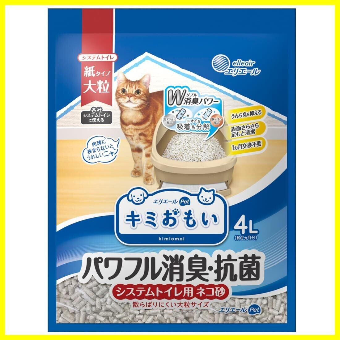 【旧品】エリエール Pet キミおもい パワフル消臭・抗菌 システムトイレ用 ネコ砂 大粒 4L