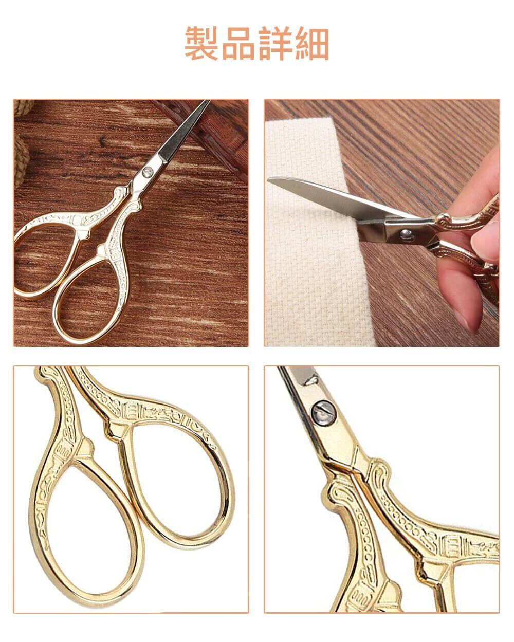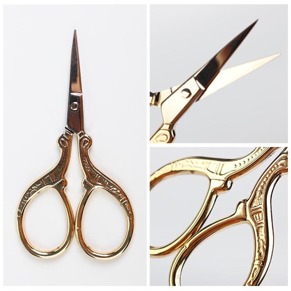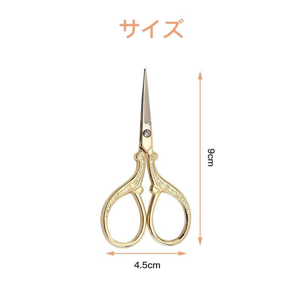 刺繍ハサミ 縫製はさみ 糸きりハサミ 小さい手芸はさみ ステンレス製 良い切れ味 DIY 裁縫ツール 手芸用 手軽 持ちやすい ヴィンテージ (ゴールド)