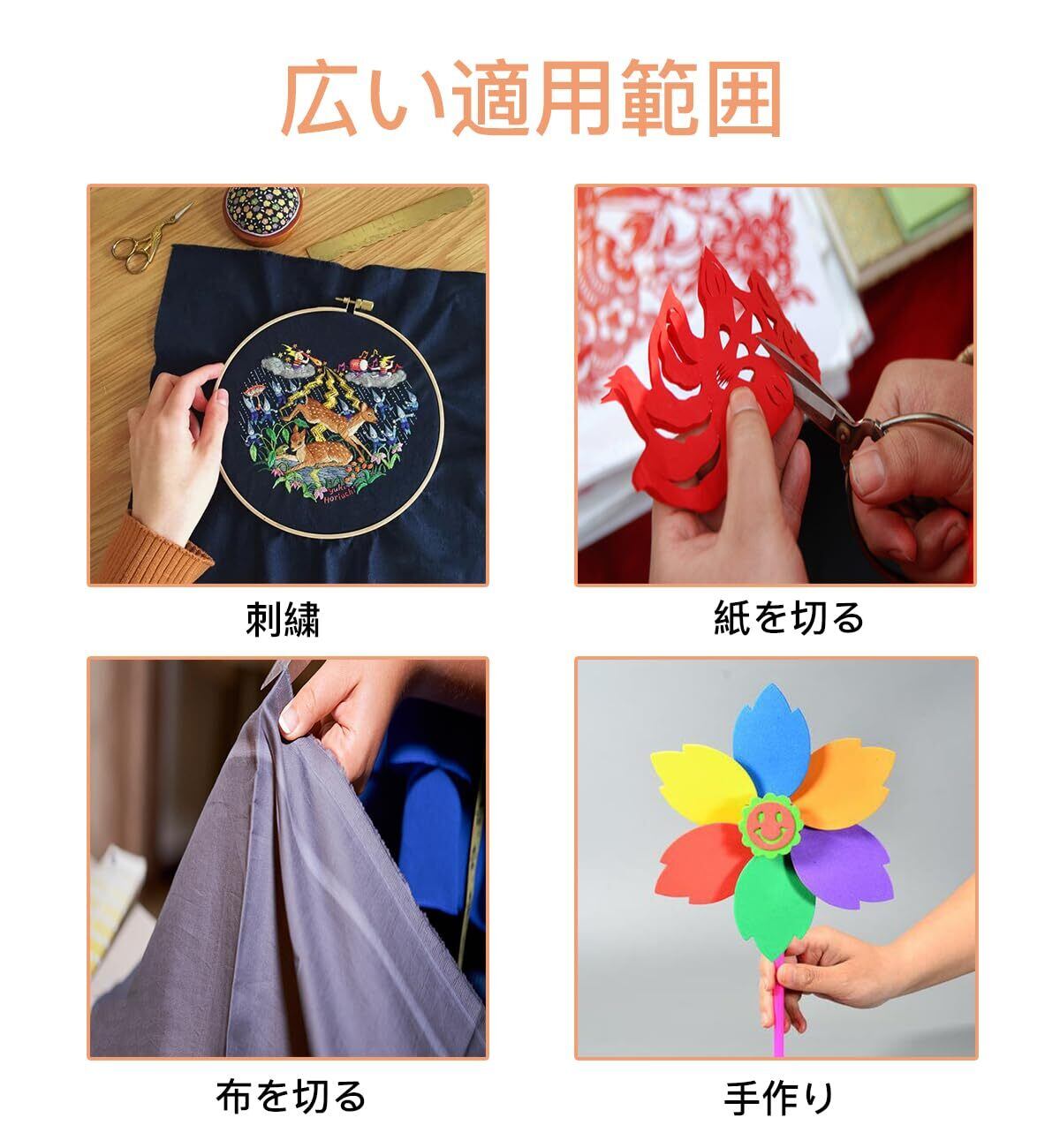 【適用範囲】刺繍、クルーエル、縫製、クロスステッチ、DIY、工芸品など、さまざまな用途に適しています。