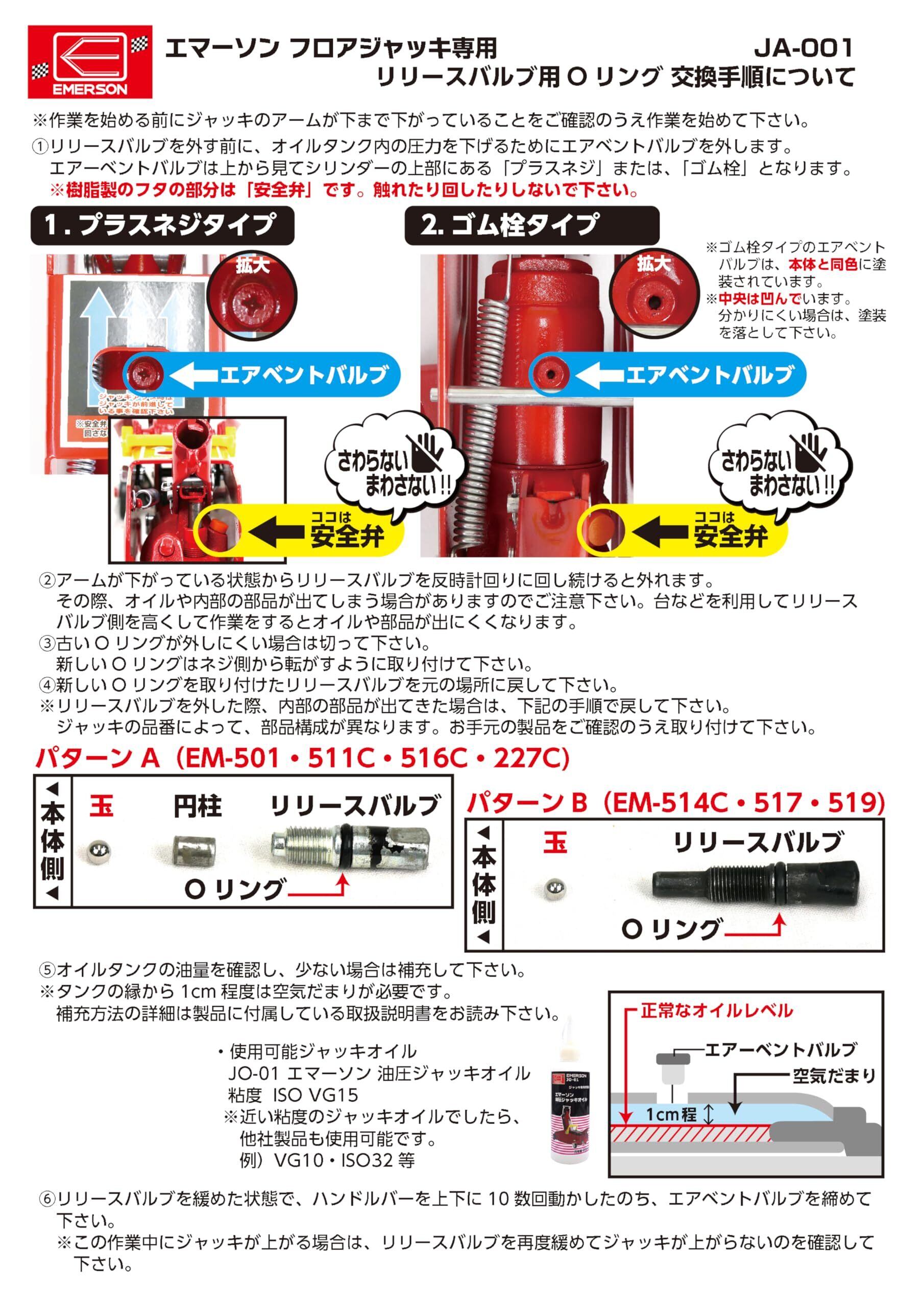 エマーソン(Emerson) フロアジャッキ補修パーツ エマーソンジャッキのリリースバルブ専用のOリング 3枚入り 内径5.8x太さ2.8mm 合成ゴム リリースバルブからのオイル漏れの補修・修理 油を完全に密封 耐油性 装着が簡単で安定したシール性能と密封性能を発揮 【適合ジャッキ】 EM-227C/501/511C/514C/516C/517/519 JA-001