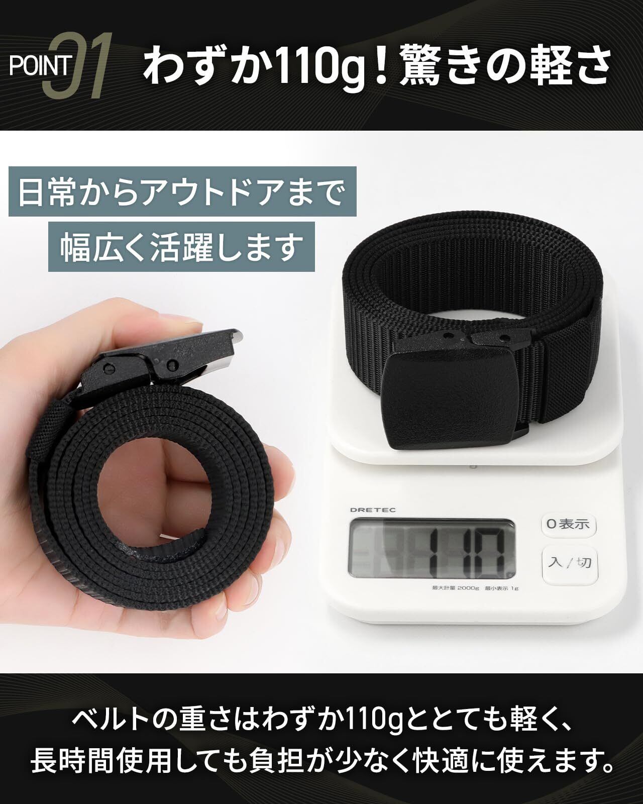 【軽量で負担軽減】合計110gの軽量設計により、長時間の作業やプライベートの活動での腰への負担を軽減します。仕事、アウトドア、サバイバルゲームなど、さまざまなシーンで活躍するシンプルなデザインです。軽量かつ頑丈なデザインで、作業着やカジュアルパンツとも相性が良く、プライベートからビジネスまで幅広く使用できるため、一つ持っていると非常に便利です。