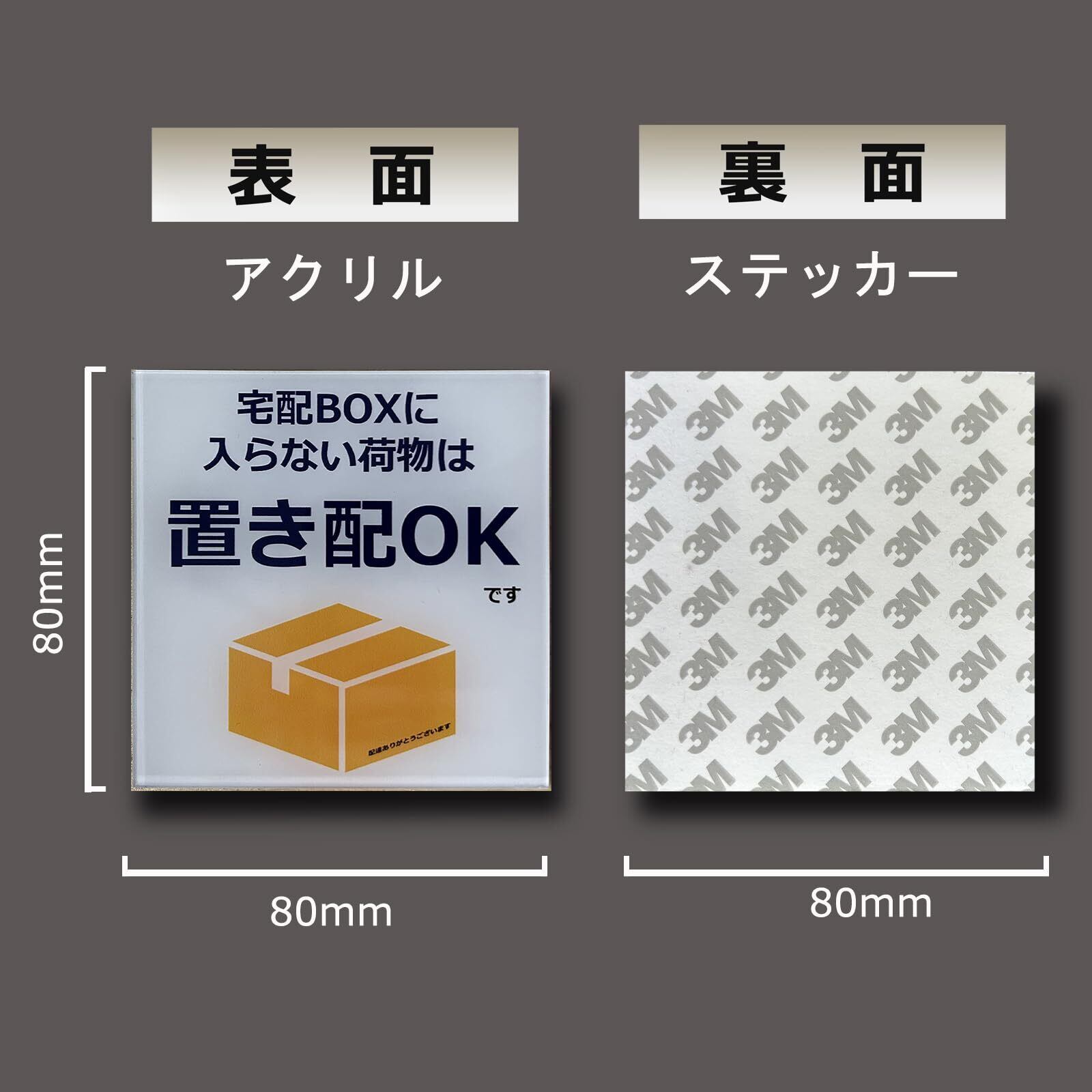 Seagron 宅配ボックスに入らない荷物は置き配OK 宅配ボックス 宅配BOX プレート 両面テープ付き 置き配達 不在案内 再配達防止 2㎜アクリル製 おしゃれ ステッカー (ホワイトー80×80㎜(1枚))…