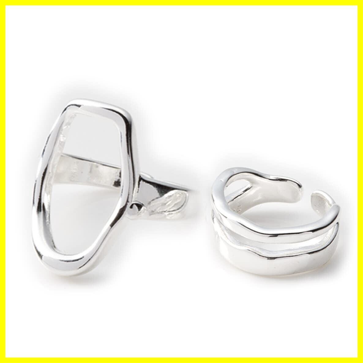 アロハモニ ヴィンテージ リング 2点セット おおぶり オーバルリング & ダブルラインリング シルバー925 指輪 喜平 チェーン フリーサイズ 韓国 オルチャン