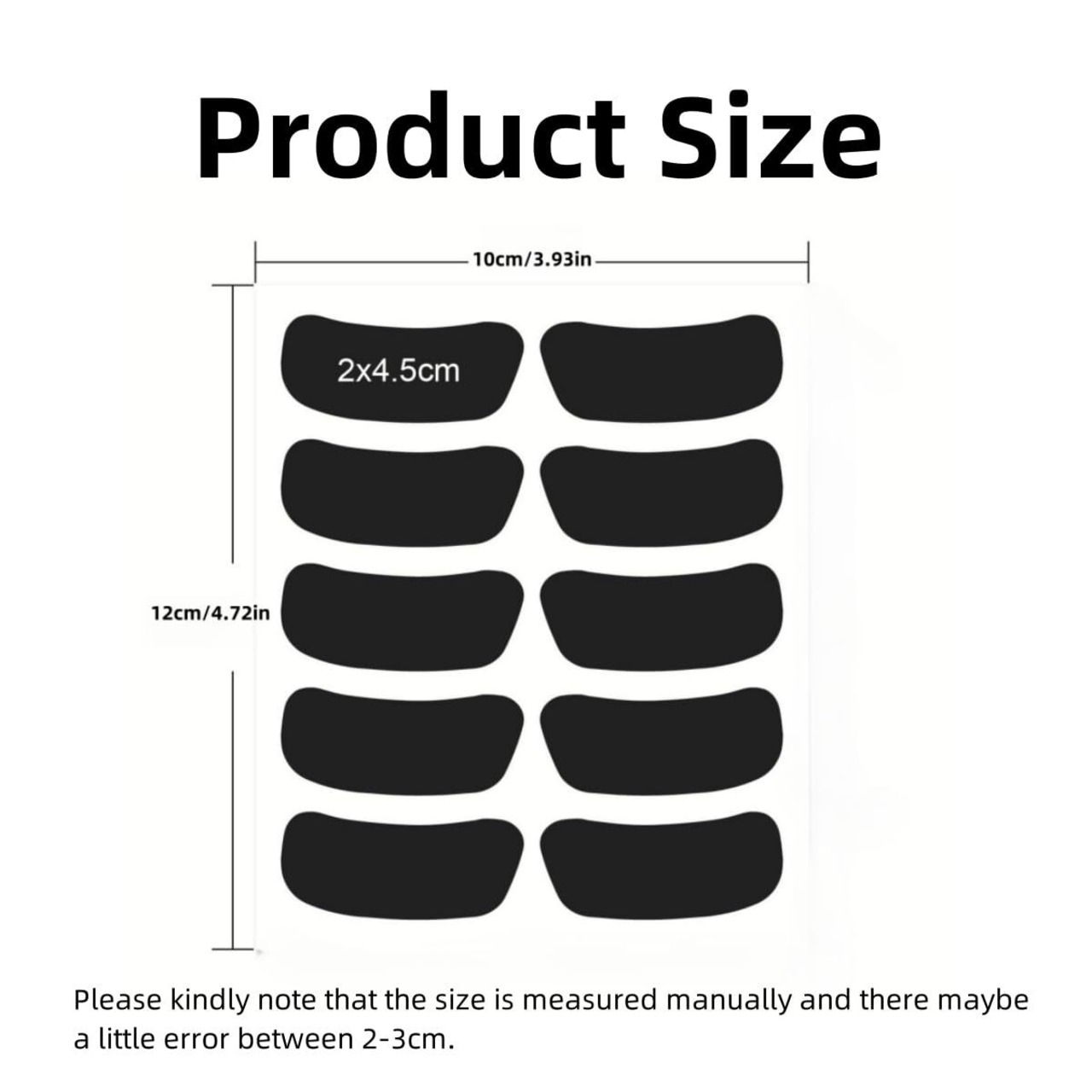 3. スポーツブラックアイパッチの寸法は約2 * 4.5 cmで、アイステッカーは5組です。 1 枚のシートとして、シートは約 12 * 10 cm で、サイズは適切です。シートをバッグに入れて、必要なときに持ち出すことができます。