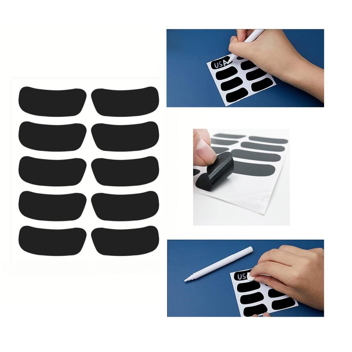 【優れたスポーツパートナー】- スポーツゲームのパートナーとして十分な黒目ステッカーを提供し、太陽のまぶしさを軽減し、試合に集中できるようにします。 白い鉛筆を使って好きなものを書いたり、ステッカーにDIYしてアイデアを表現したりできます。