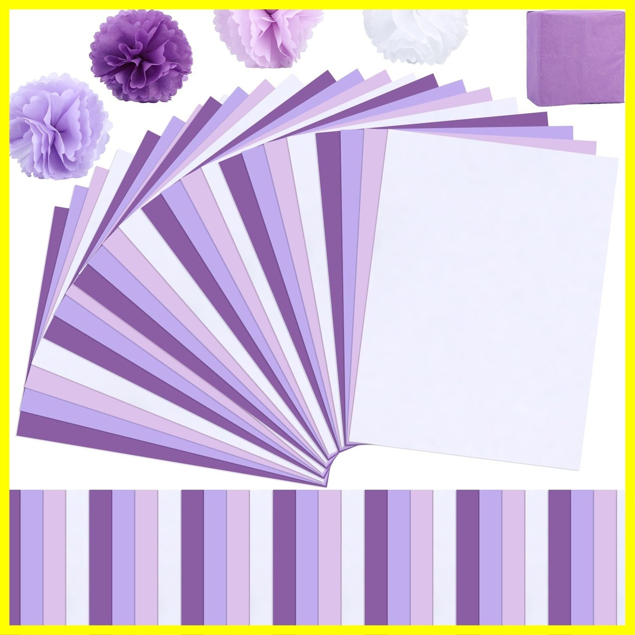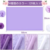 【たくさん入る】パッケージには紫 薄葉紙合計120枚、4色、各色30枚が入っています。数が多いので、個人使用はもちろん、手芸材料や店舗用の包装紙として利用するのもじゅうぶんはずです。